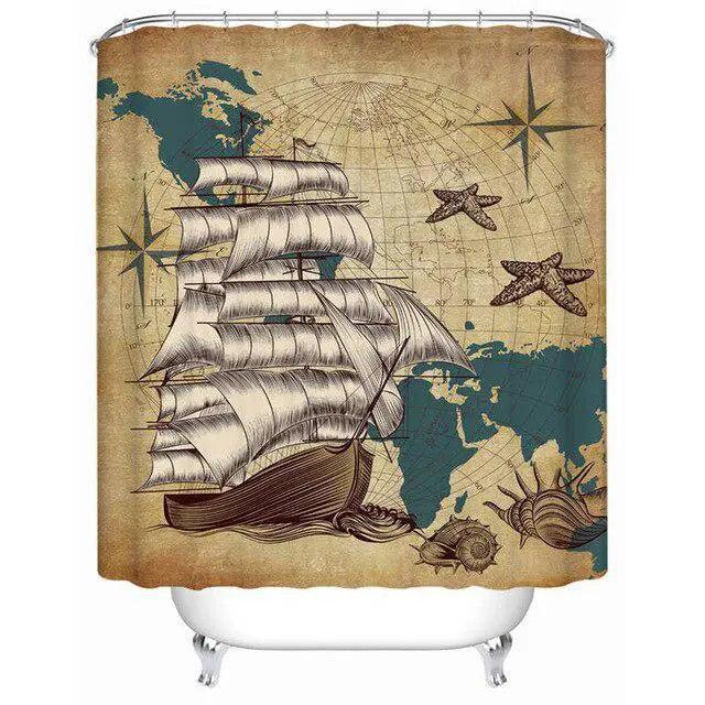 Stylish Nautical Compass Shower Curtain for Chic Bathroom Aesthetics