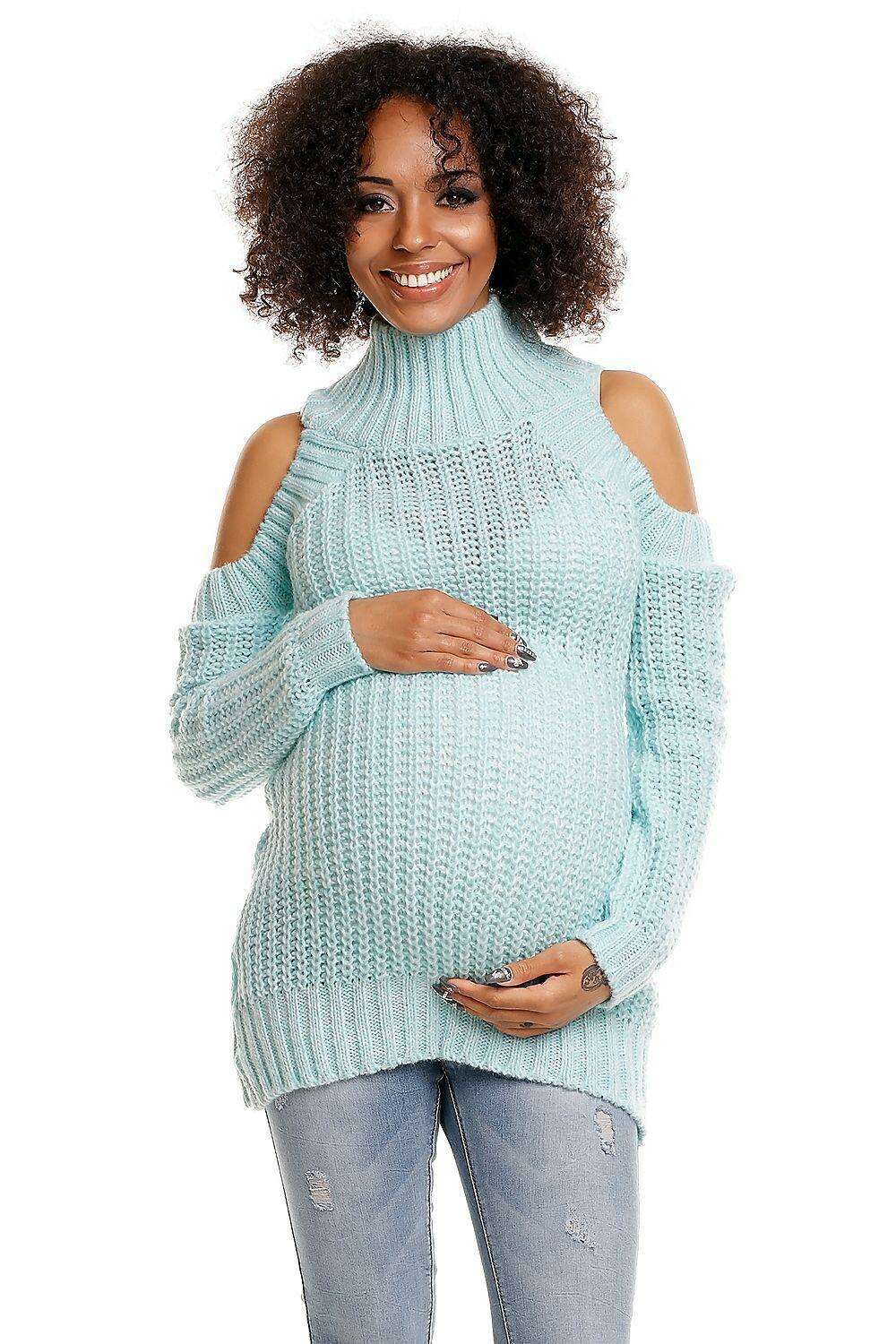 The Chic Peekaboo Shoulder Maternity Sweater boasts: