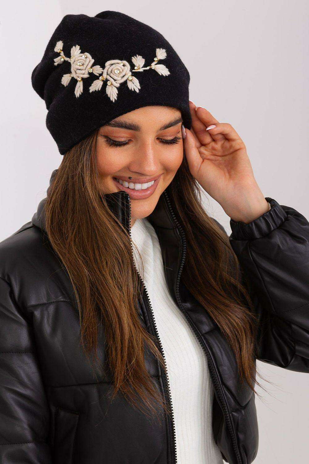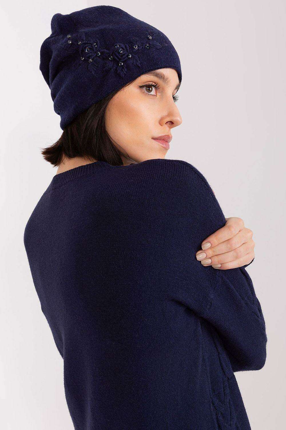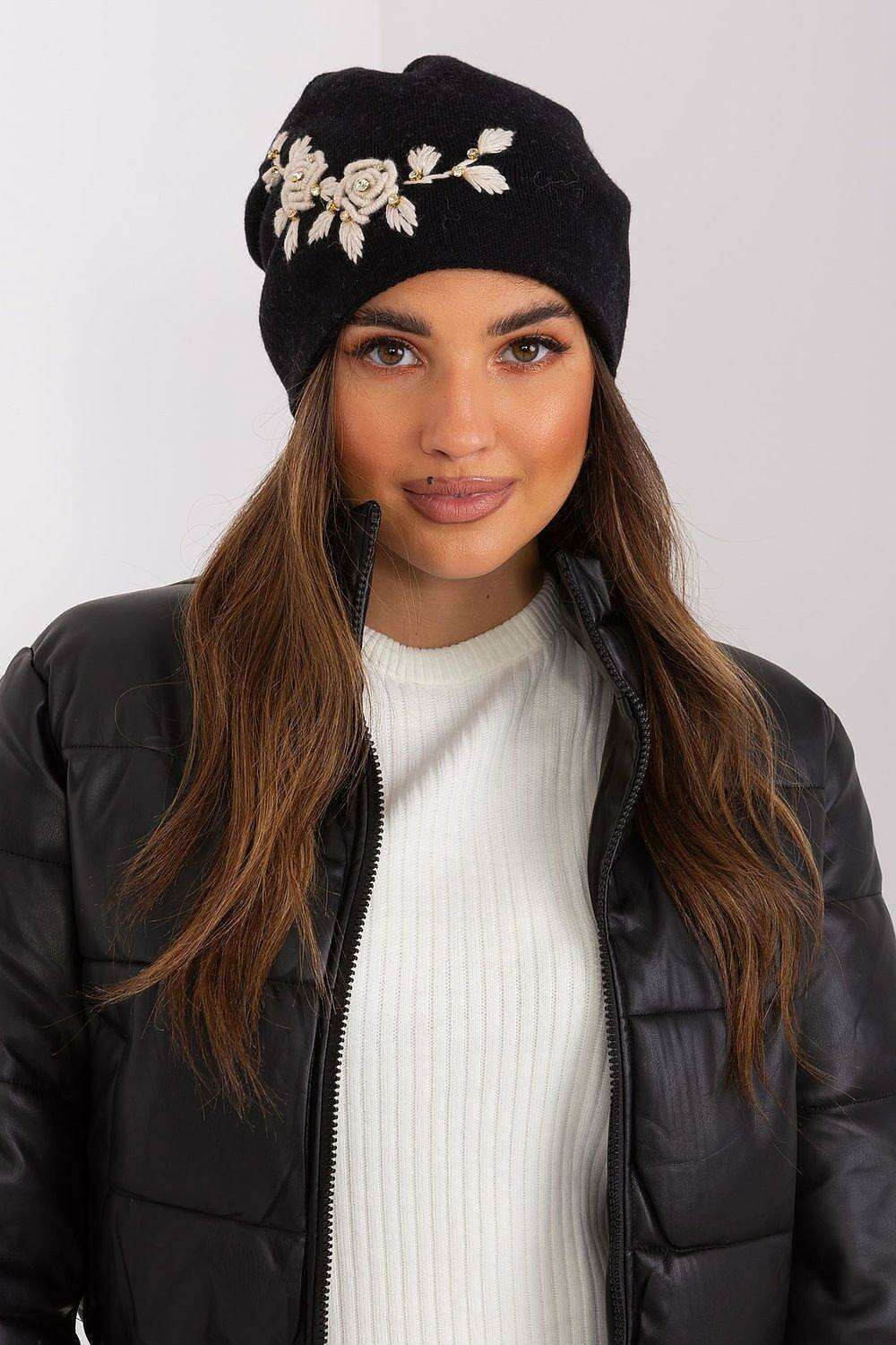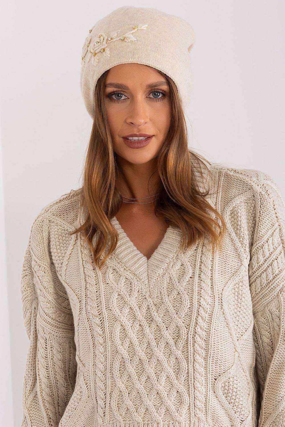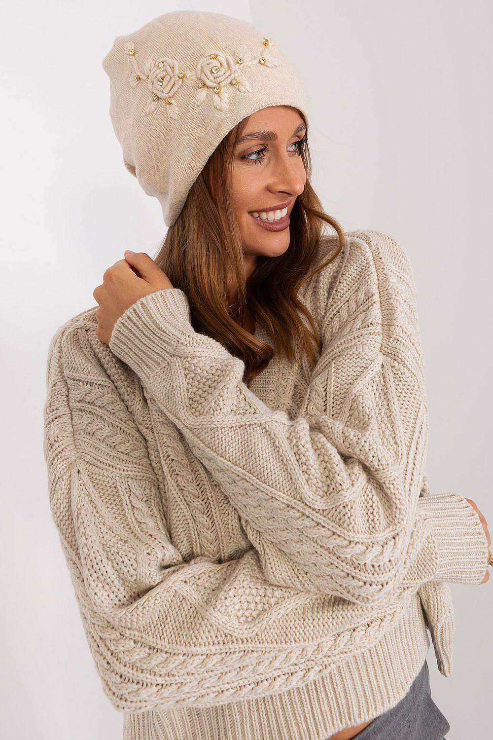Stylish Winter Knit Beanie with Elegant Applique Detail