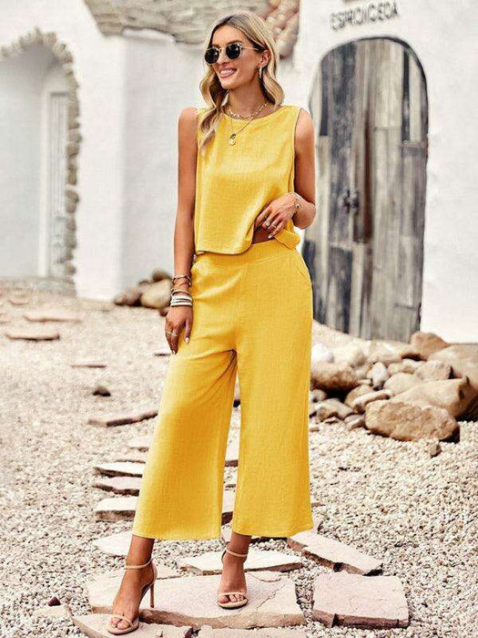 Chic Sleeveless Blouse and Cropped Trousers Set - Women's Fashion Outfit