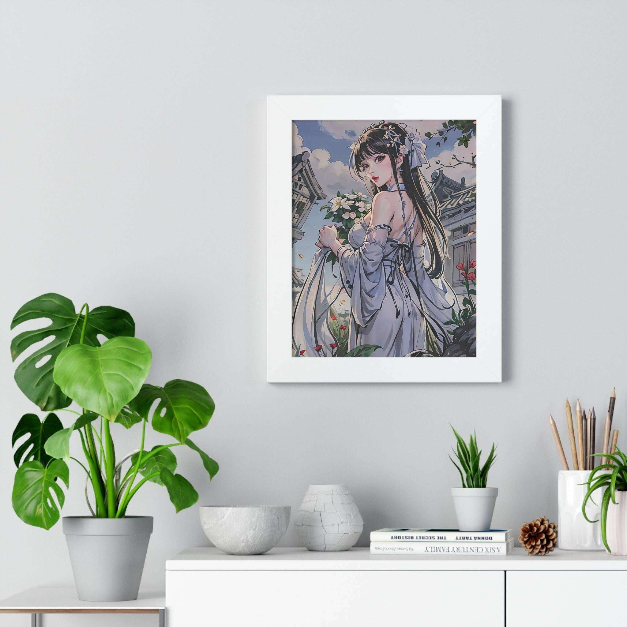 Sustainable Anime Girl Framed Wall Art: Enhance Your Space with Eco-Conscious Design..