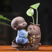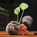 Zen Harmony Tea Experience Set with Buddha Figure, Monk Doll, and Miniature Plant Pot for Calming Tea Moments
