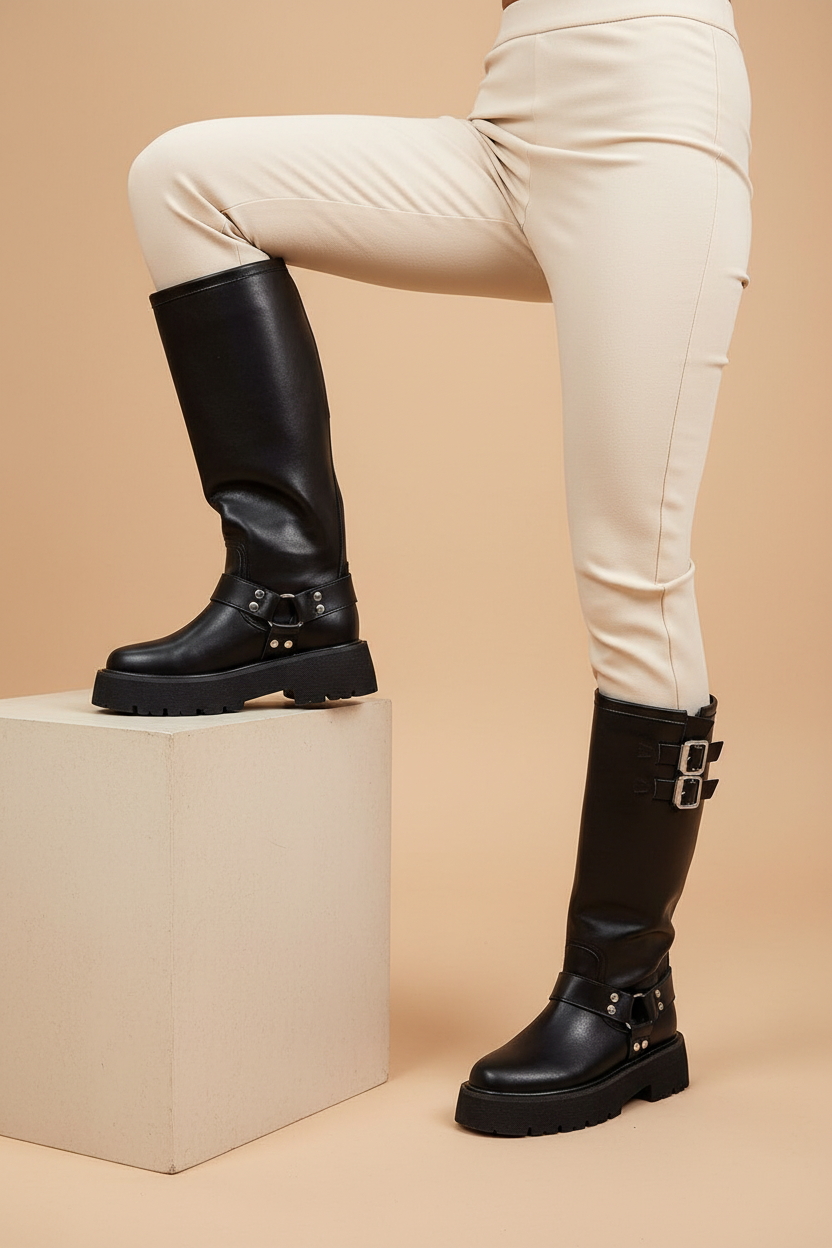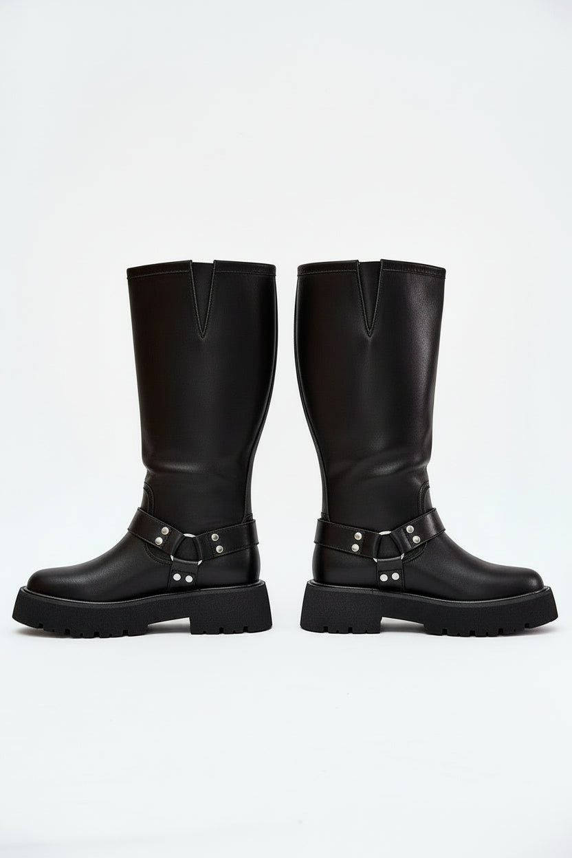 Women's Leather Thigh-High Boots – Insulated, Slip-On & Rock Chic