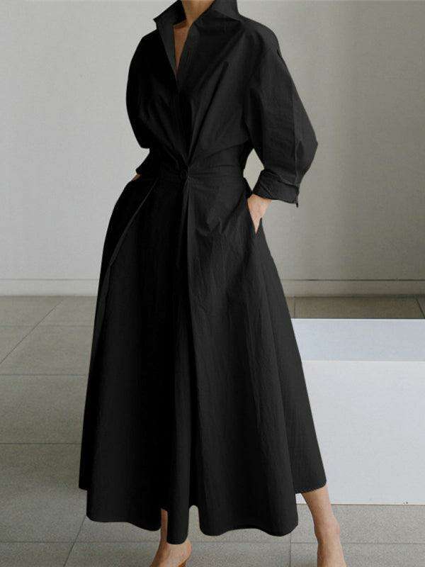 Chic Solid Color Shirt Dress - Essential Fashion Staple for Every Woman