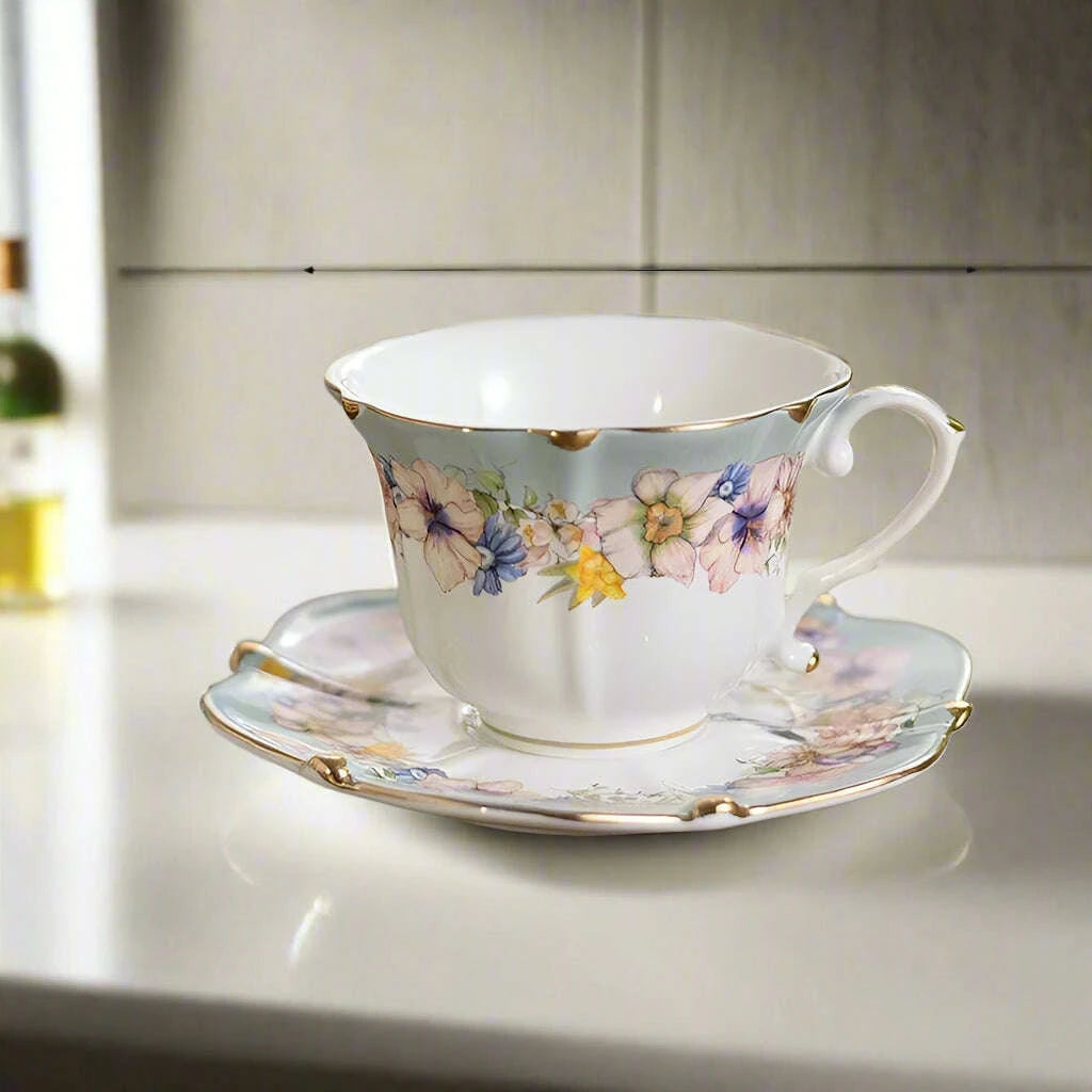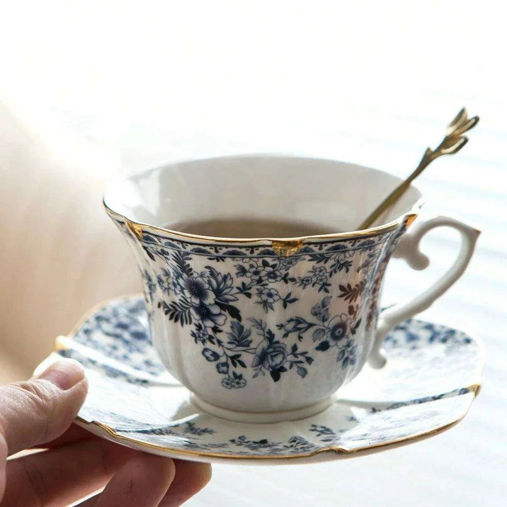Timeless Vintage Charm: 200ml Elegant Ceramic Coffee Cup & Saucer Set for Sophisticated Tea Moments