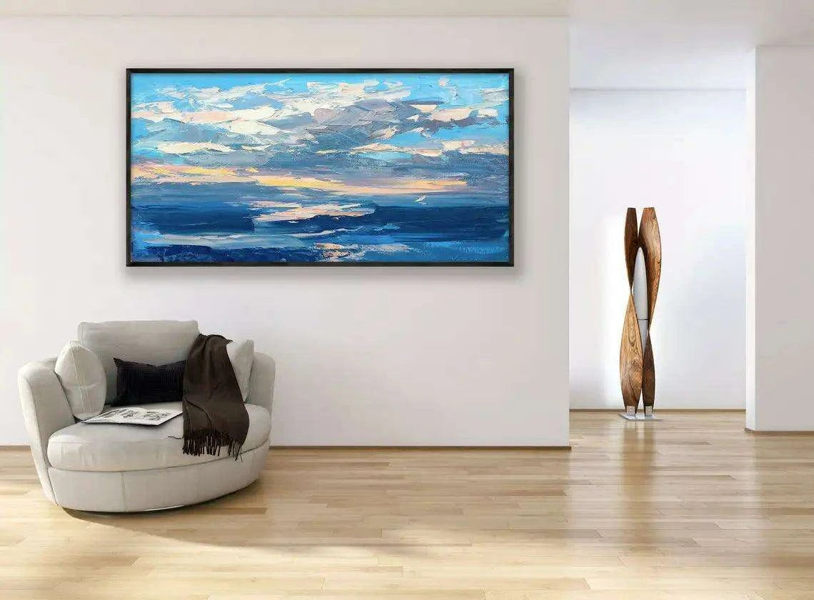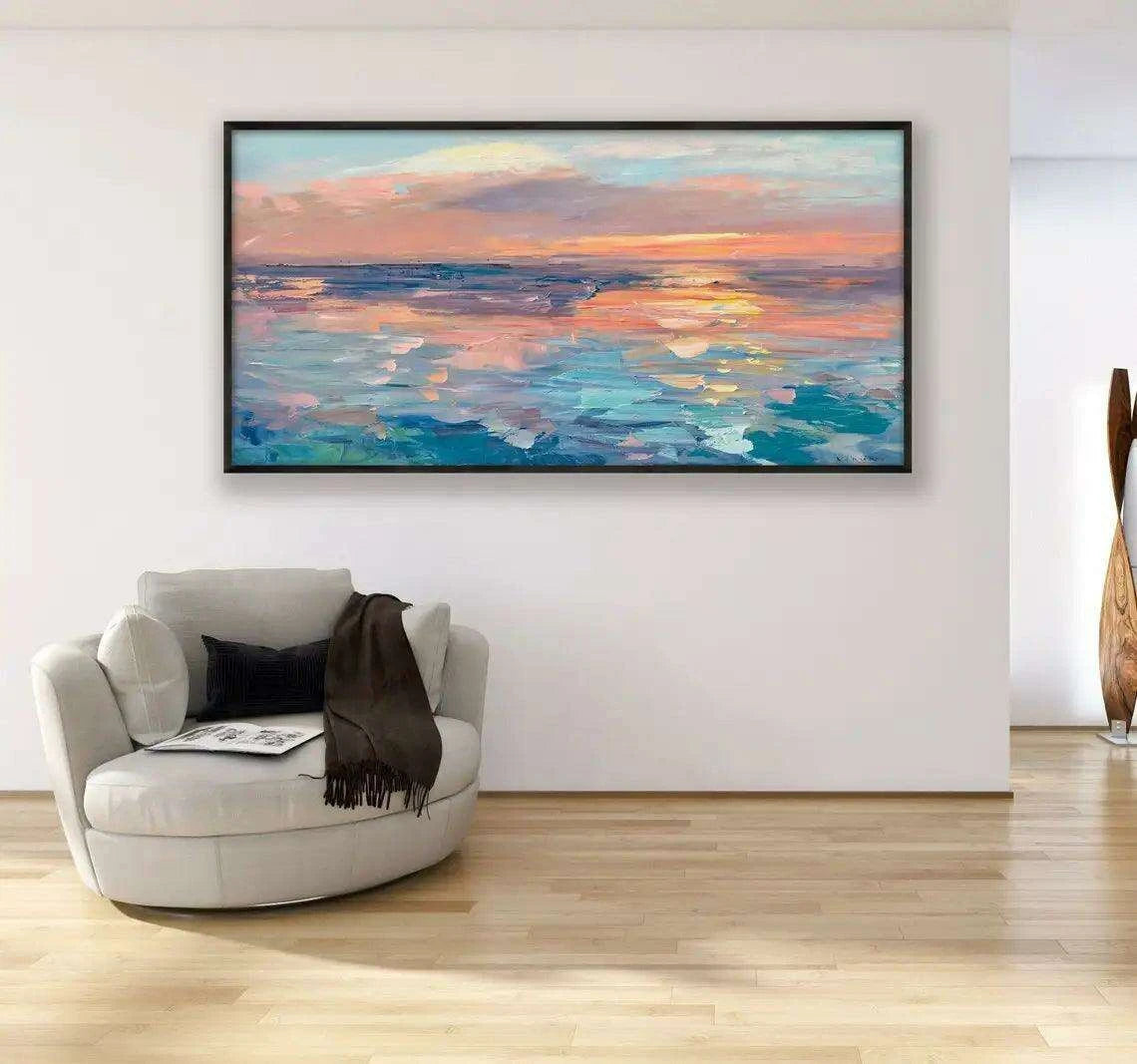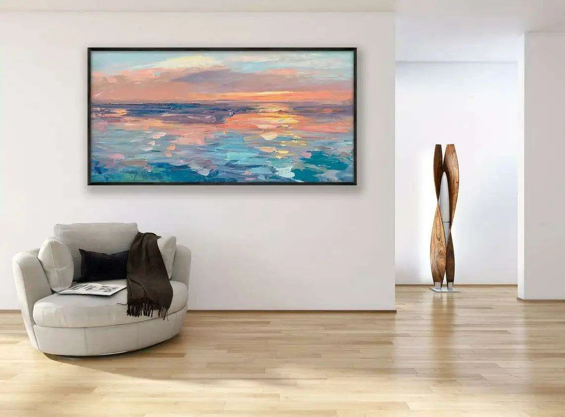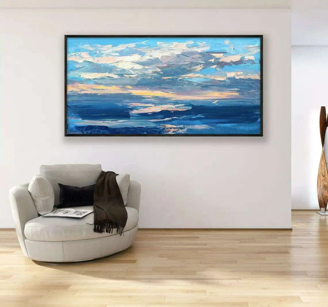 Tranquil Horizon Large Handmade Abstract Oil Painting for Peaceful Home Decor