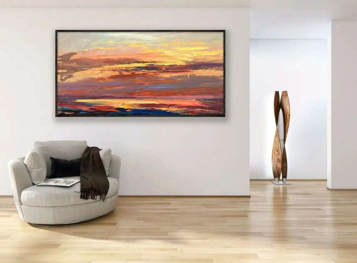 Serene Twilight Abstract Canvas Art - Large Handmade Oil Painting for Calming Home Decor Transform your living space into an... Read more Read more