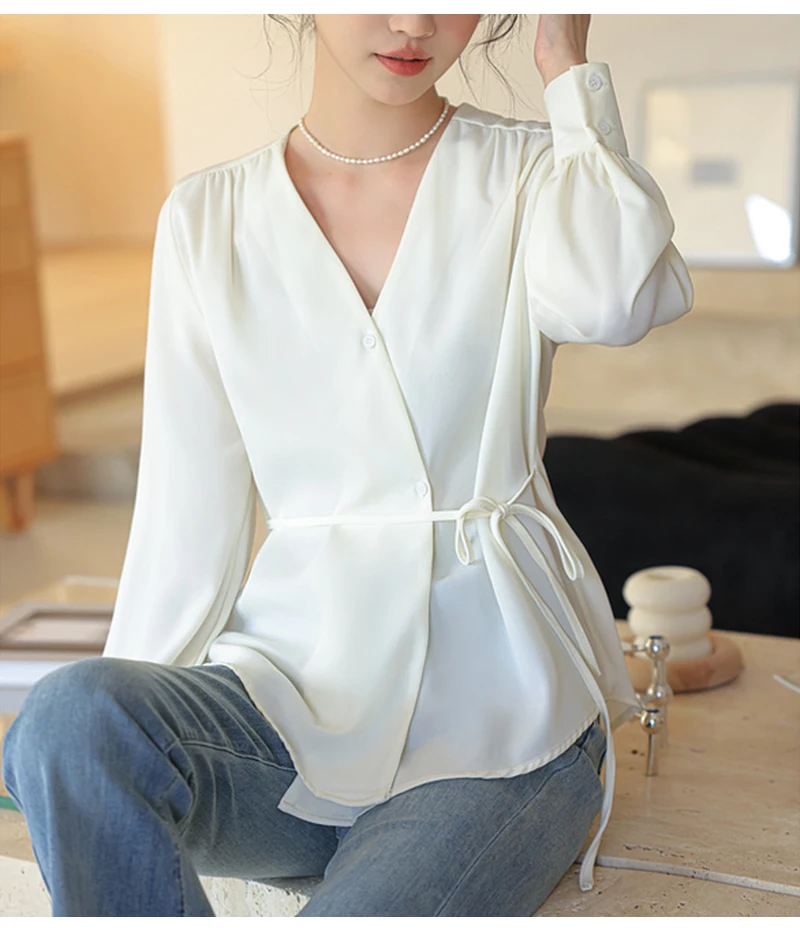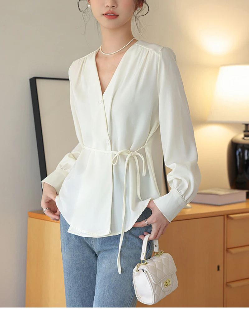 Whether you're heading to the office, enjoying brunch with friends, or going out for a casual evening, the Trendy White V Neck Lace-Up Blouse is your go-to choice for achieving effortless style. Refresh your wardrobe and embrace the new season with this essential piece!