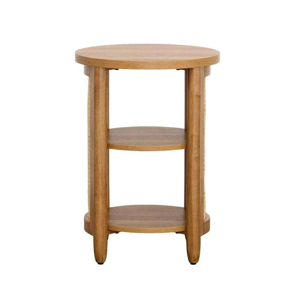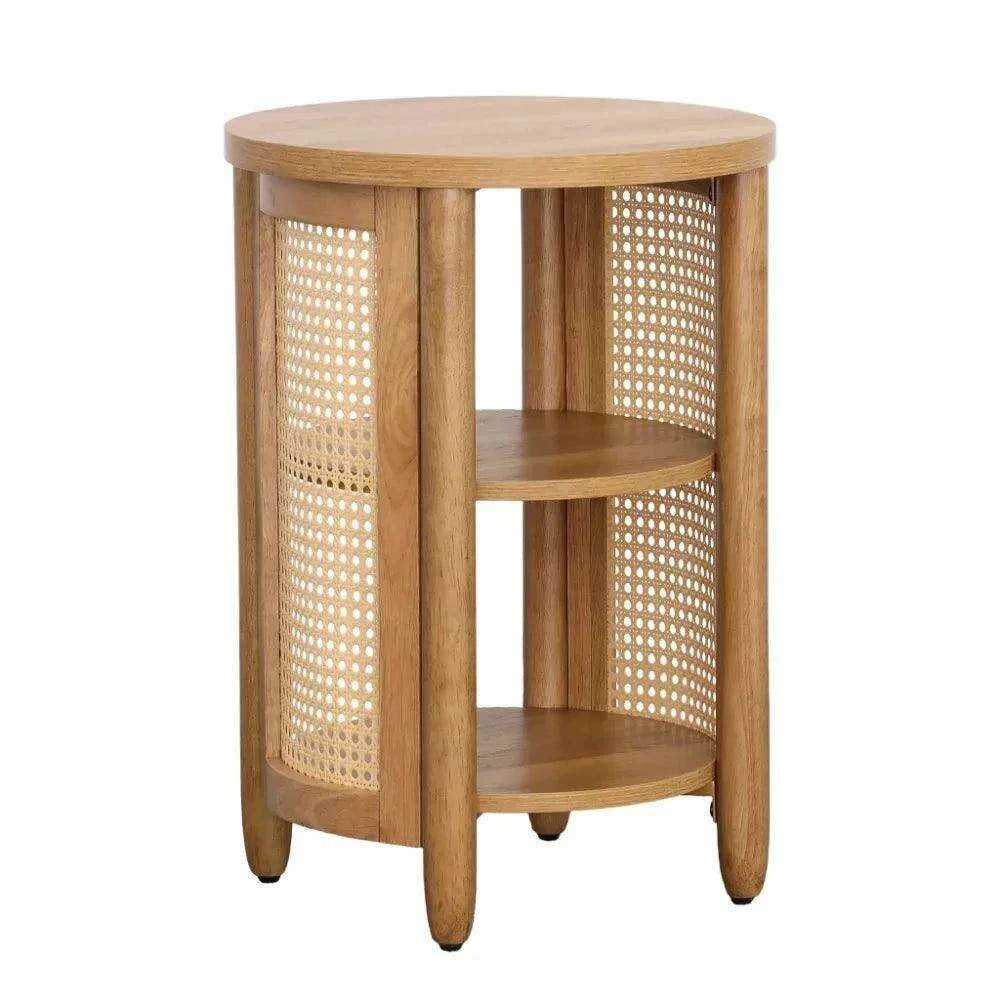 Tropical Charm Caned Round Side Table with Warm Honey Finish – Versatile Elegance for Any Room