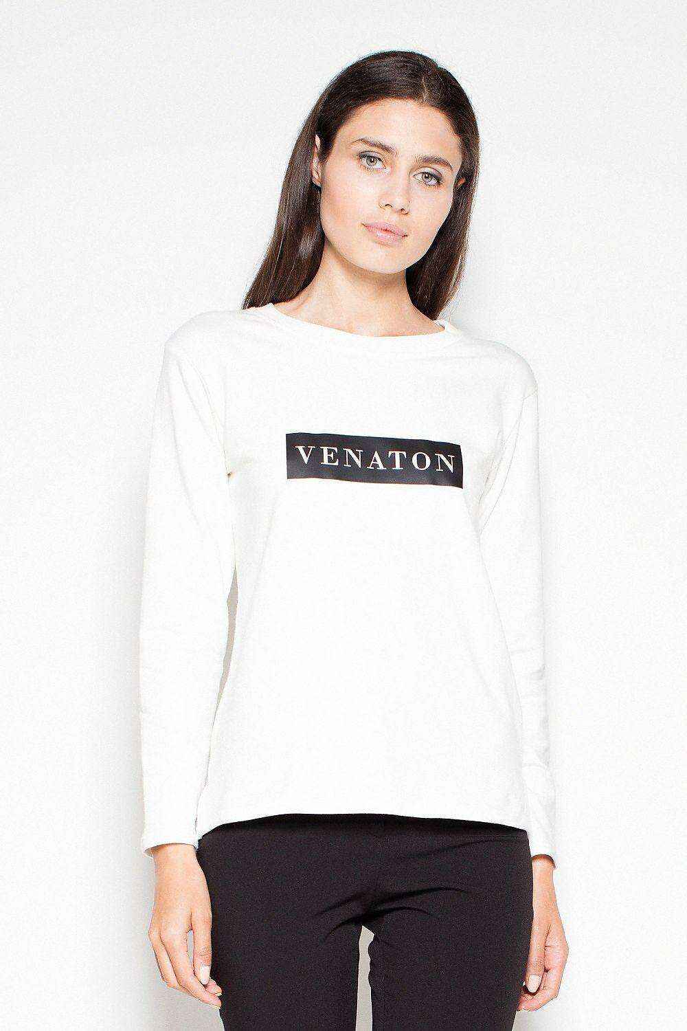 Venaton Asymmetrical Hem Cotton Blouse with Unique Print
