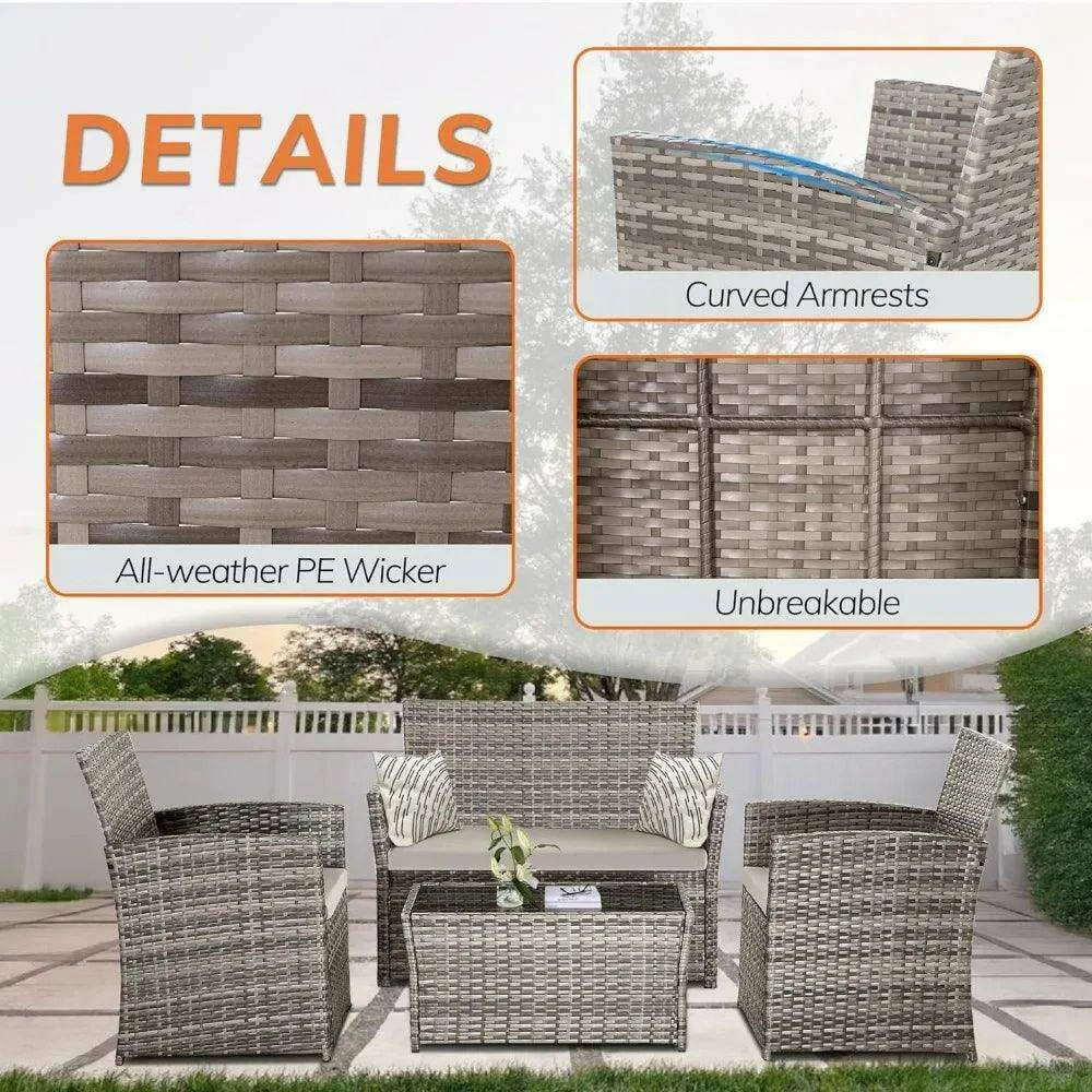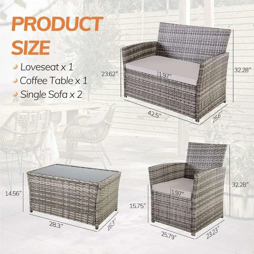 • All-Weather Wicker: Crafted from high-quality PE wicker, this furniture is designed for year-round outdoor use, resisting the elements while maintaining its beauty.