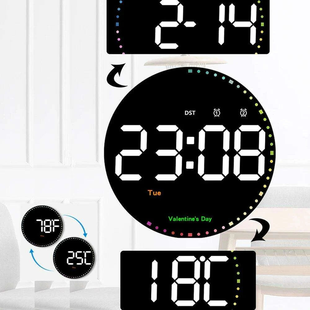 Vibrant 10-Inch LED Wall Clock with Remote, Temperature Readout, and Dual Alarm Features - Stylish Home Décor Timepiece