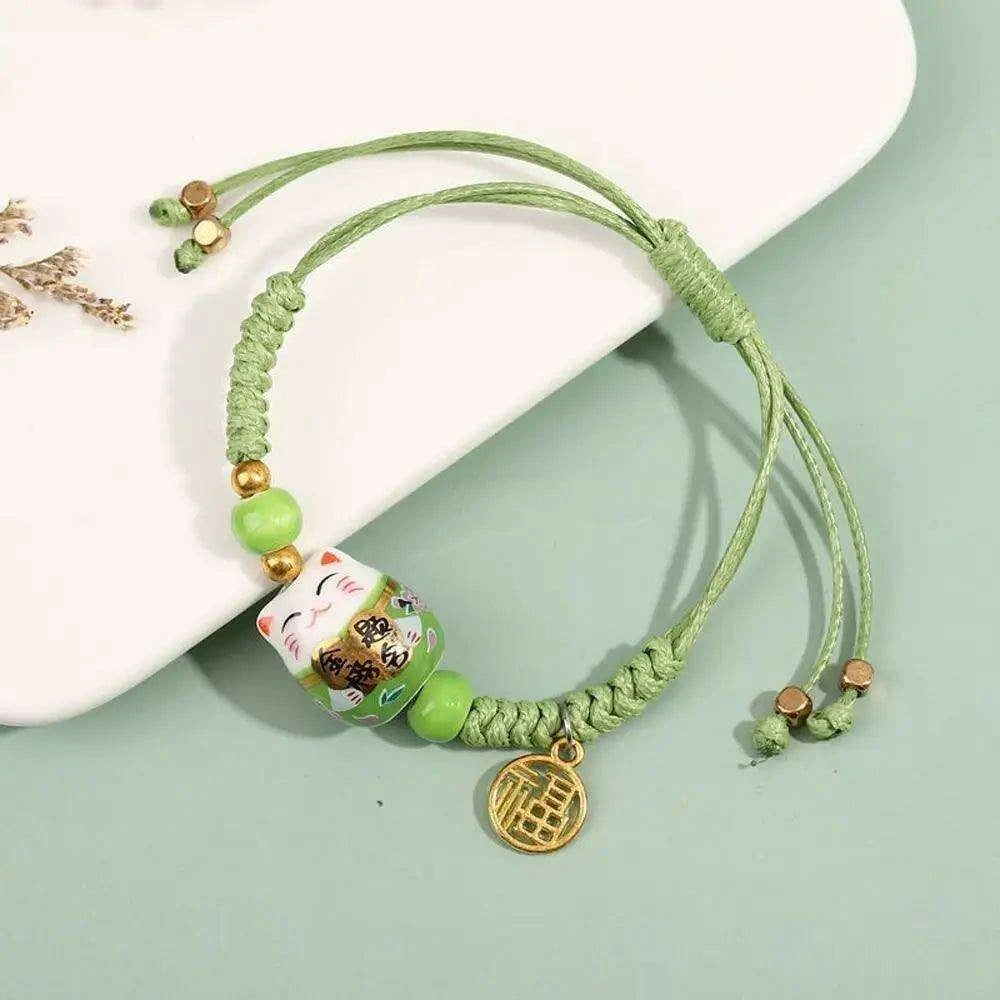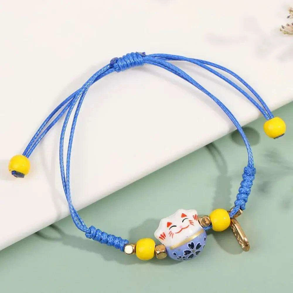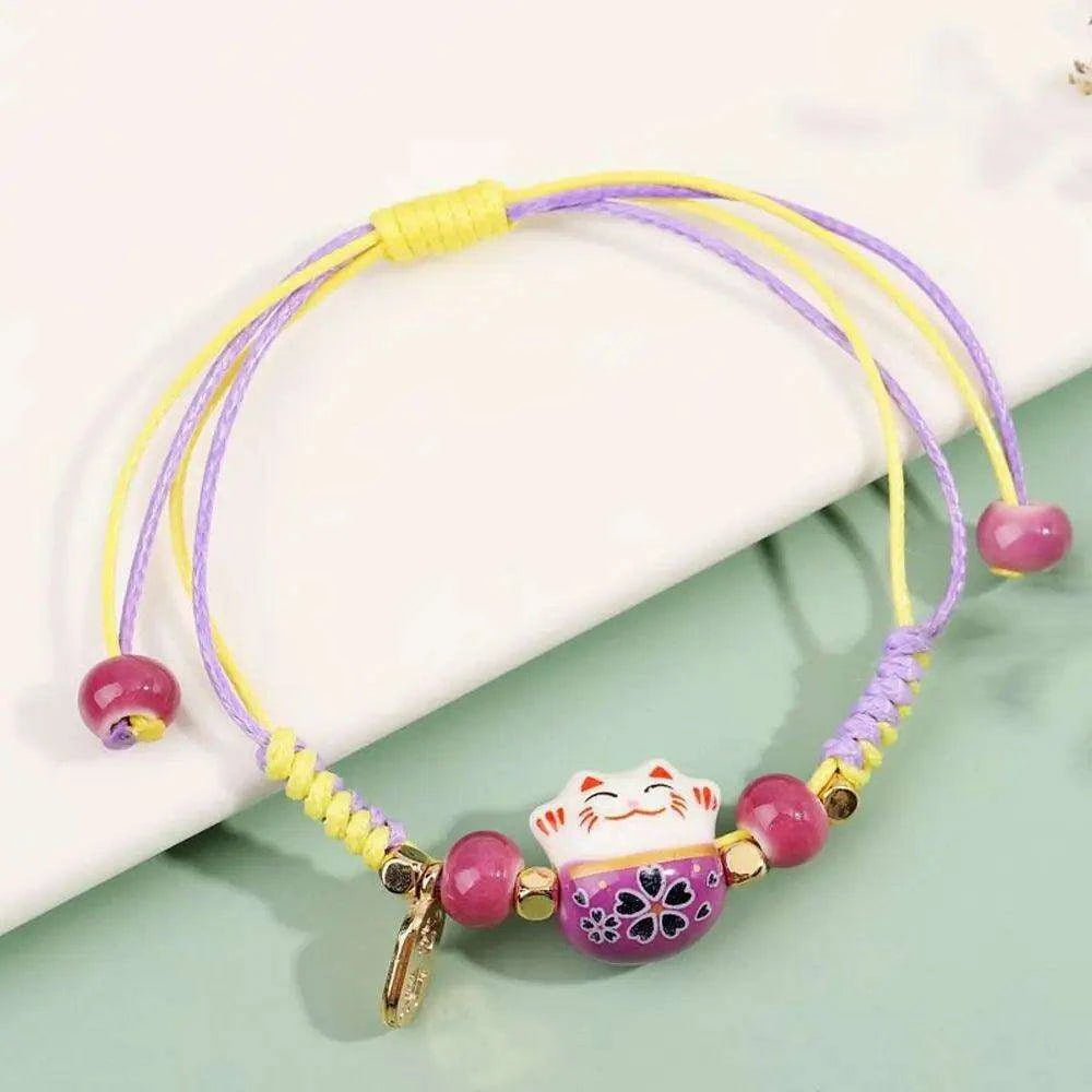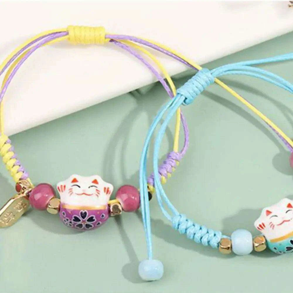 Vibrant Adjustable Lucky Cat Charm Bangles - Playful Rope Bracelets for Women and Girls, Ideal Gift for Prosperity