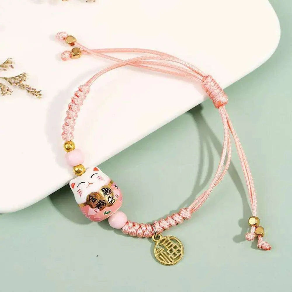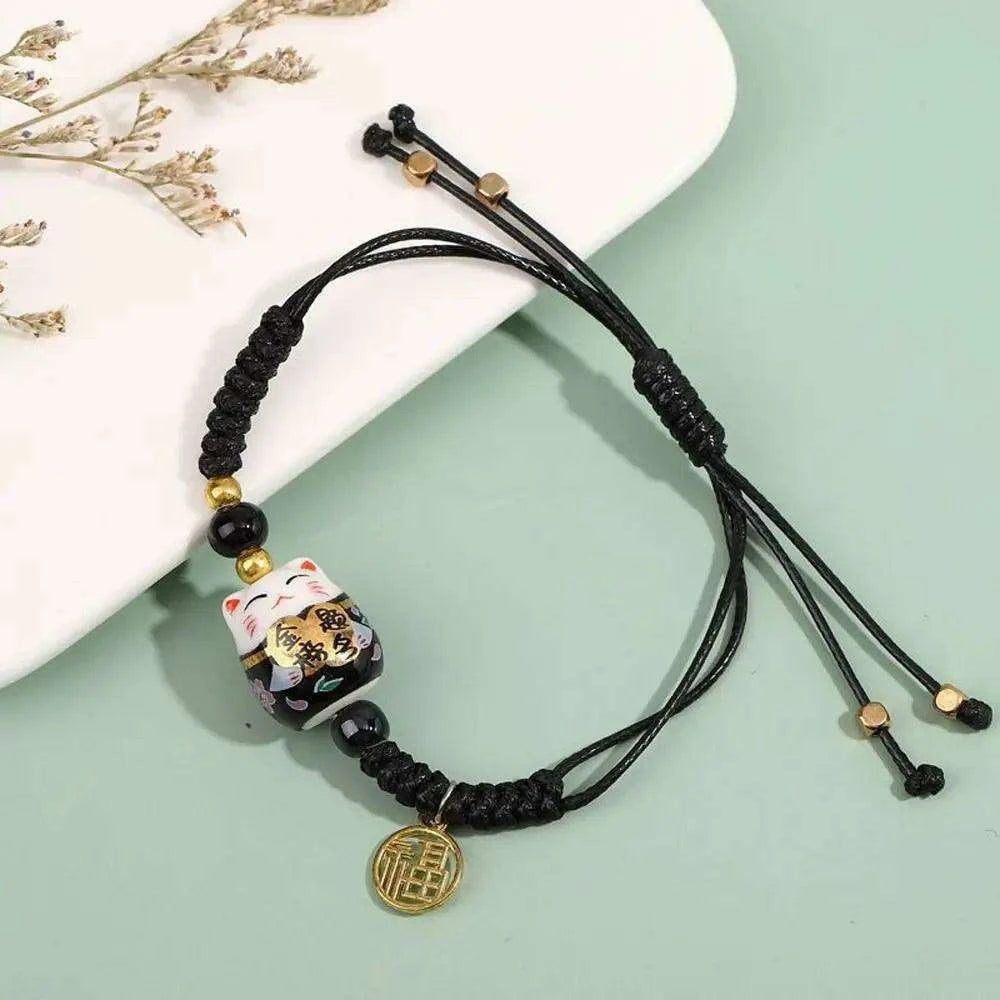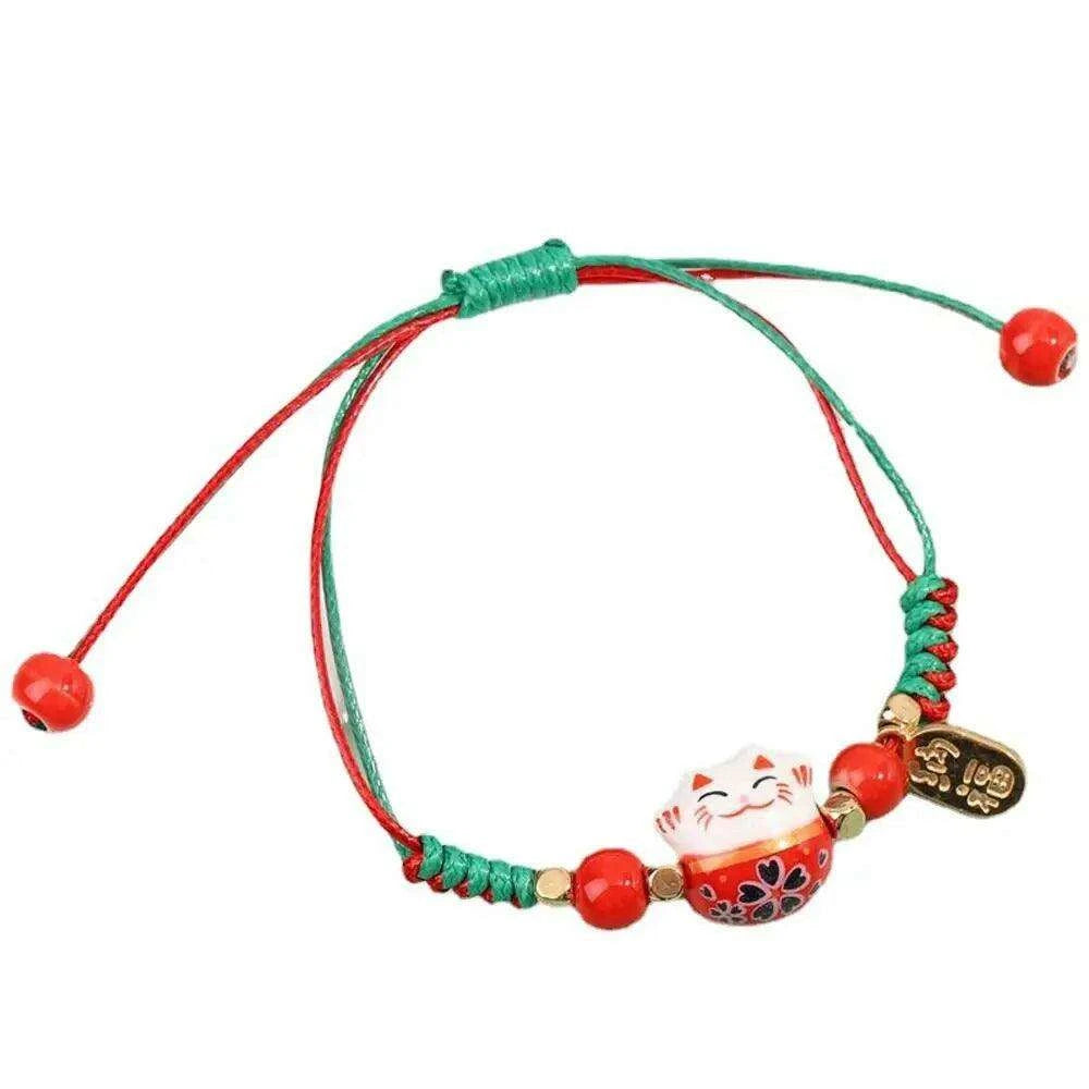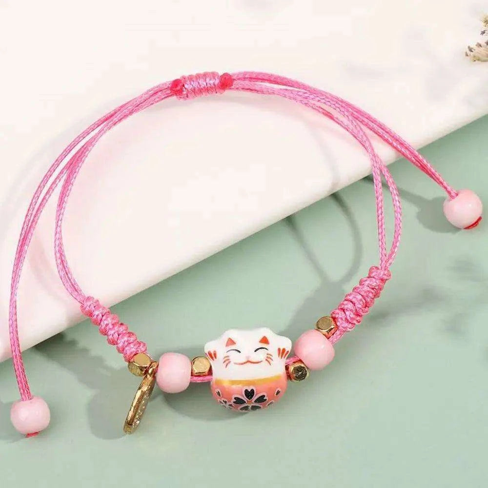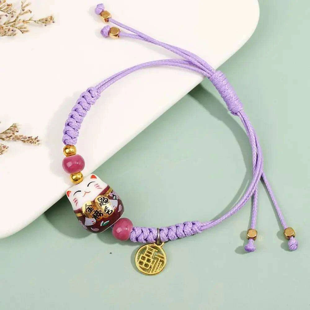 Vibrant Adjustable Lucky Cat Charm Bangles - Playful Rope Bracelets for Women and Girls, Ideal Gift for Prosperity