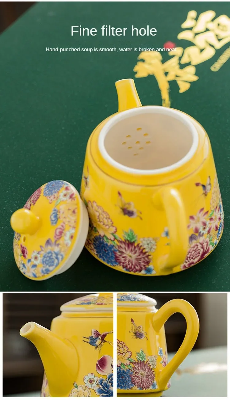 Transform your tea drinking into a cherished ritual with our enchanting Kung Fu Tea Set. Its unique blend of functionality and aesthetics makes it an ideal gift for tea lovers or a charming addition to your own collection. Experience the essence of traditional Kung Fu tea ceremonies in the comfort of your home, where every cup is a celebration of flavor and tradition. Indulge in the art of tea with the Artisan Vibrant Ceramic Kung Fu Tea Set—the perfect companion for your tea journey.