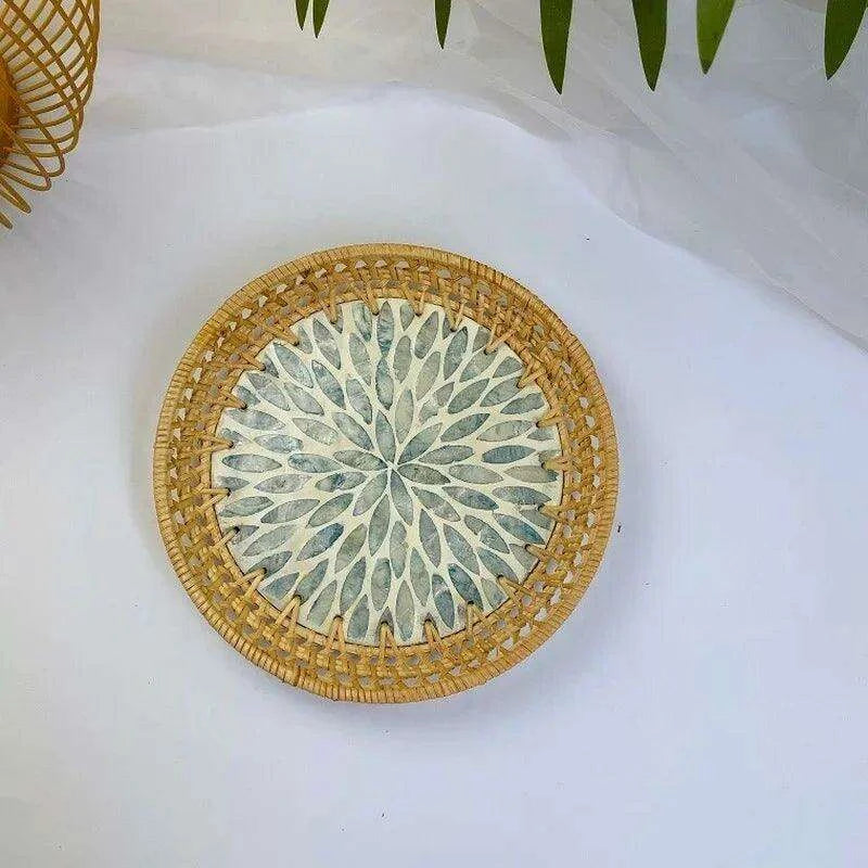 Vibrant Artisan Seashell Rattan Bowl - Handcrafted Storage Solution with Natural Elegance