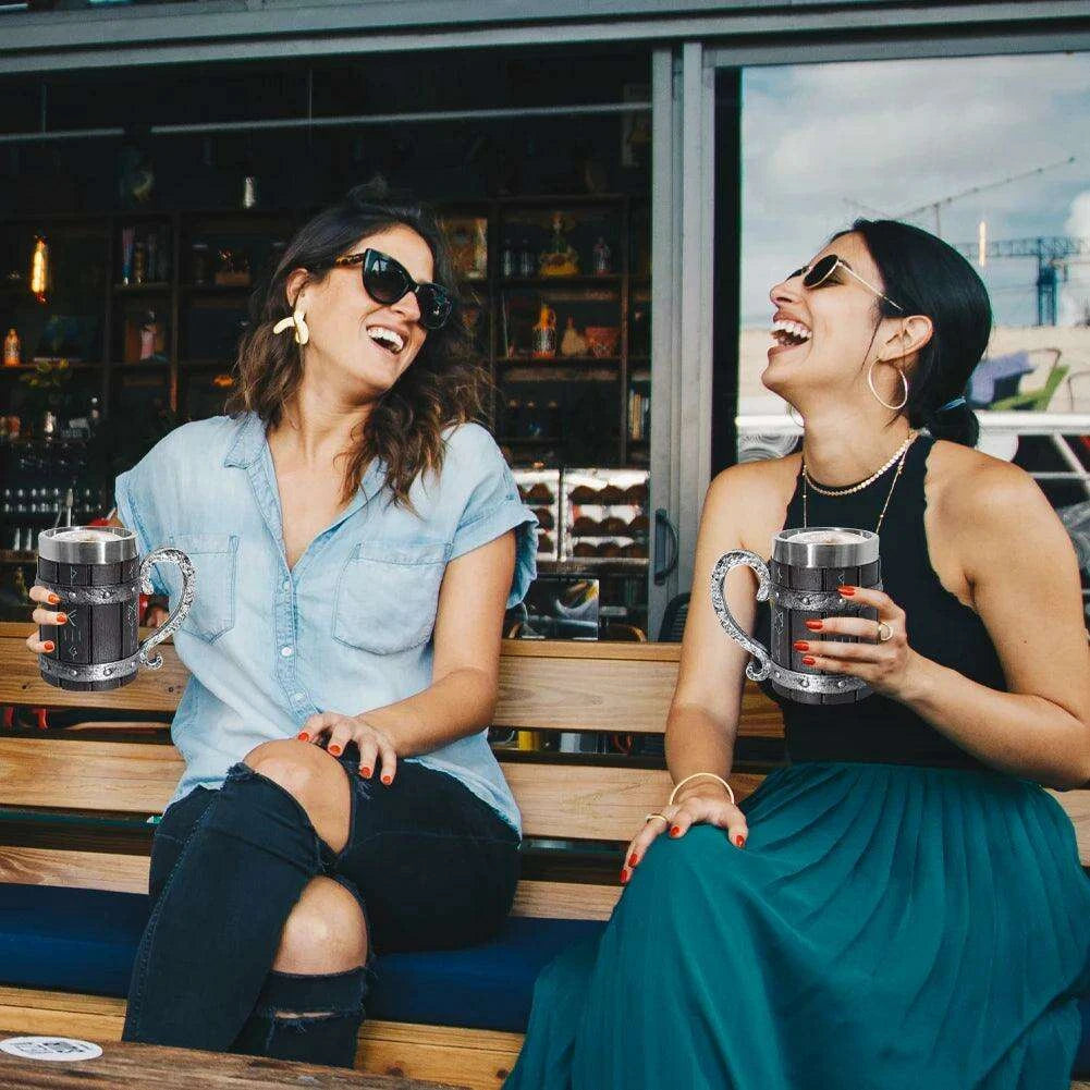 Viking-Inspired Stainless Steel Mug with Artistic Resin Design