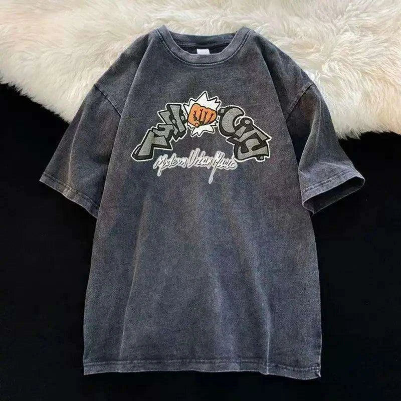 Vintage American Tide Heavy Cotton Summer T-Shirt for Men - Loose Fit Short Sleeves