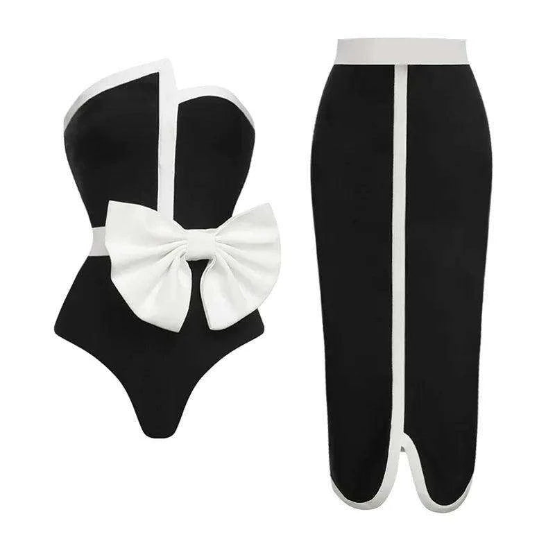 Elevate your beachwear collection with our Black Off-Shoulder Bow Tie One Piece and Skirt Swimwear Set. Whether you're heading to the beach or enjoying a pool party, this luxurious swimwear set ensures you stay stylish and comfortable all summer long.