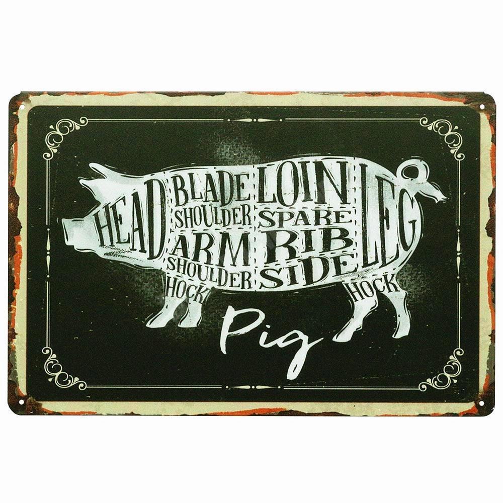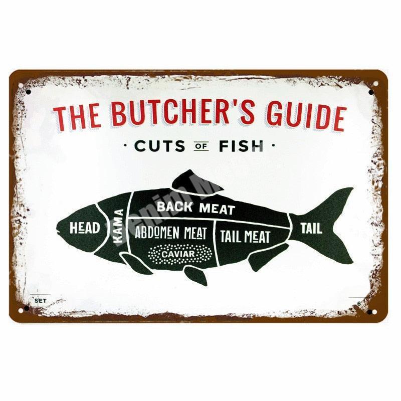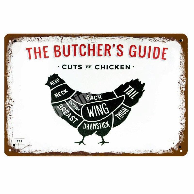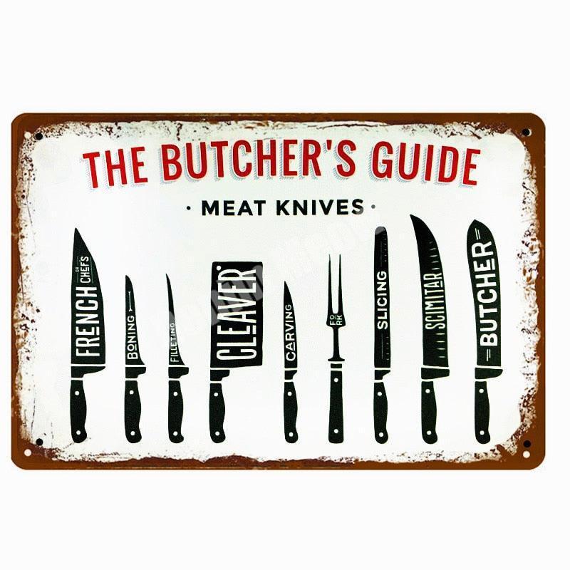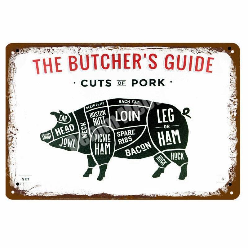 Rustic Culinary Artistry Metal Sign - Vintage Butcher's Guide Decor with Bulk Discounts