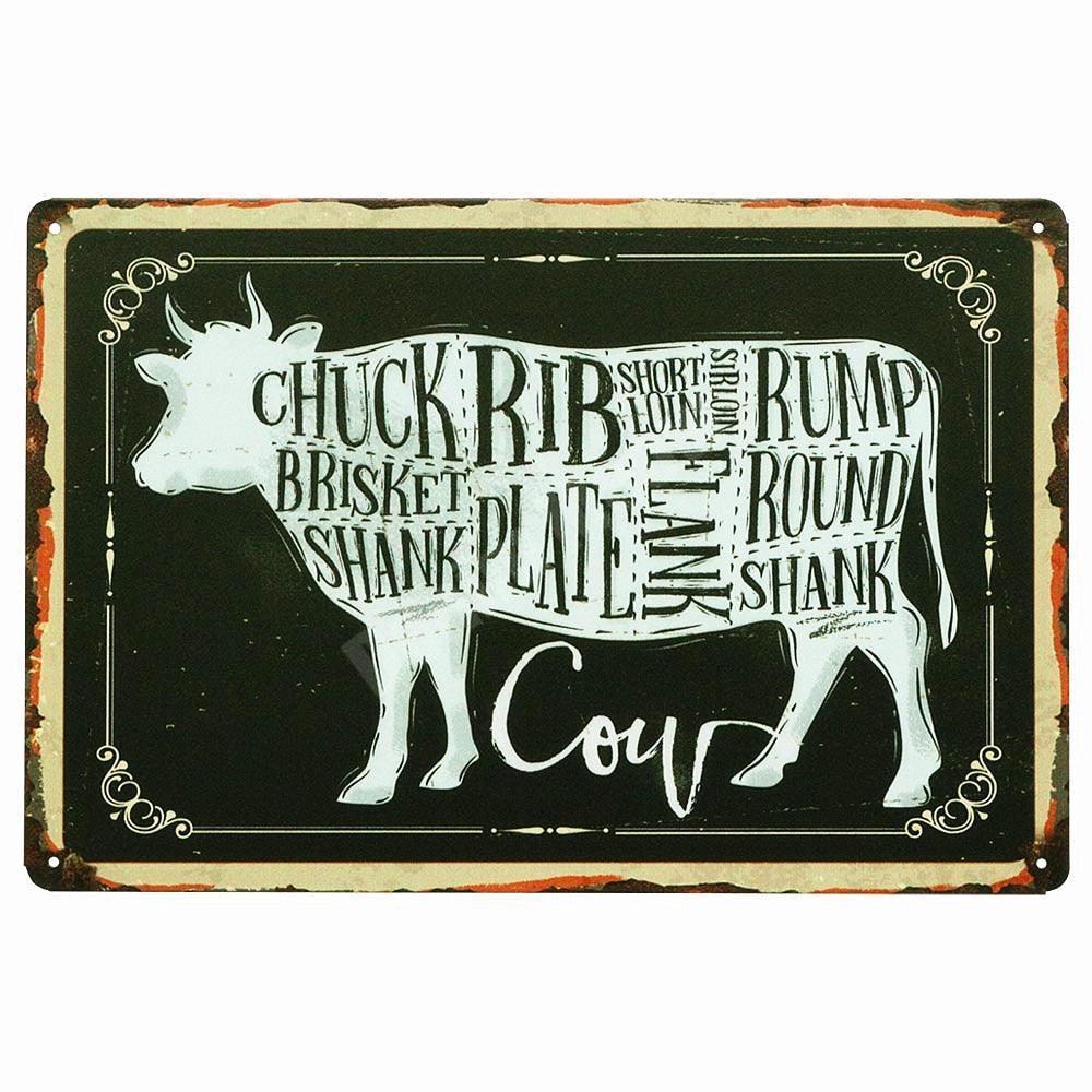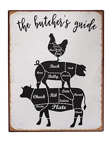 Vintage Culinary Metal Wall Art - Rustic Butcher's Guide Sign with Bulk Savings