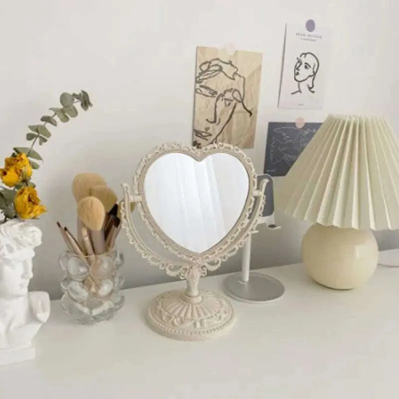 This Heart Shaped Makeup Mirror is not just a tool; it's a statement piece. Its vintage Nordic style resonates with those who appreciate classic beauty with a modern twist. Ideal for makeup enthusiasts or anyone looking to elevate their daily routine, this mirror combines functionality with aesthetic appeal.