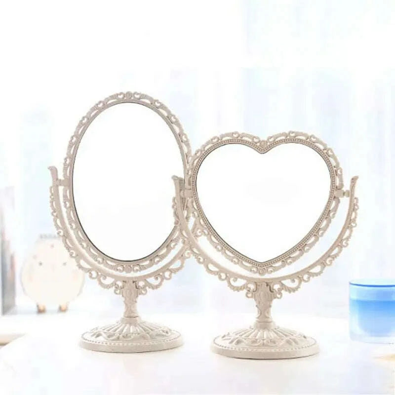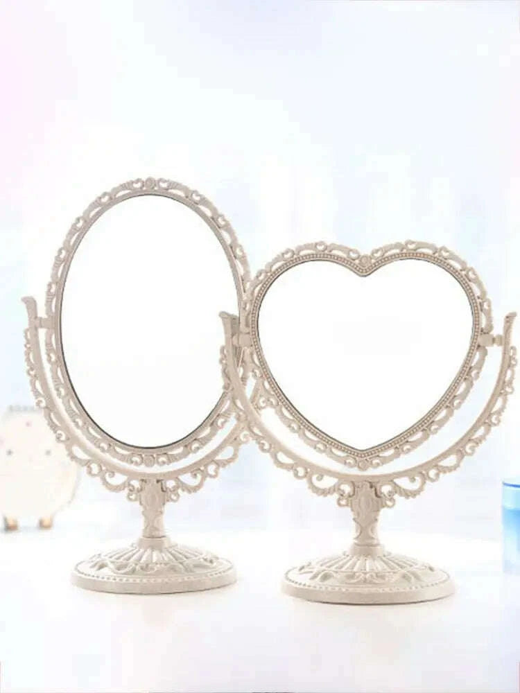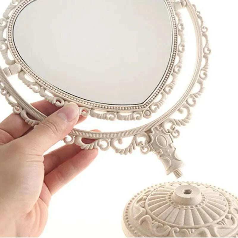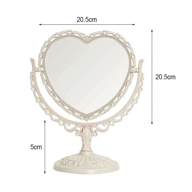 Vintage Nordic Heart-Shaped Acrylic Double-Sided Rotatable Makeup Mirror