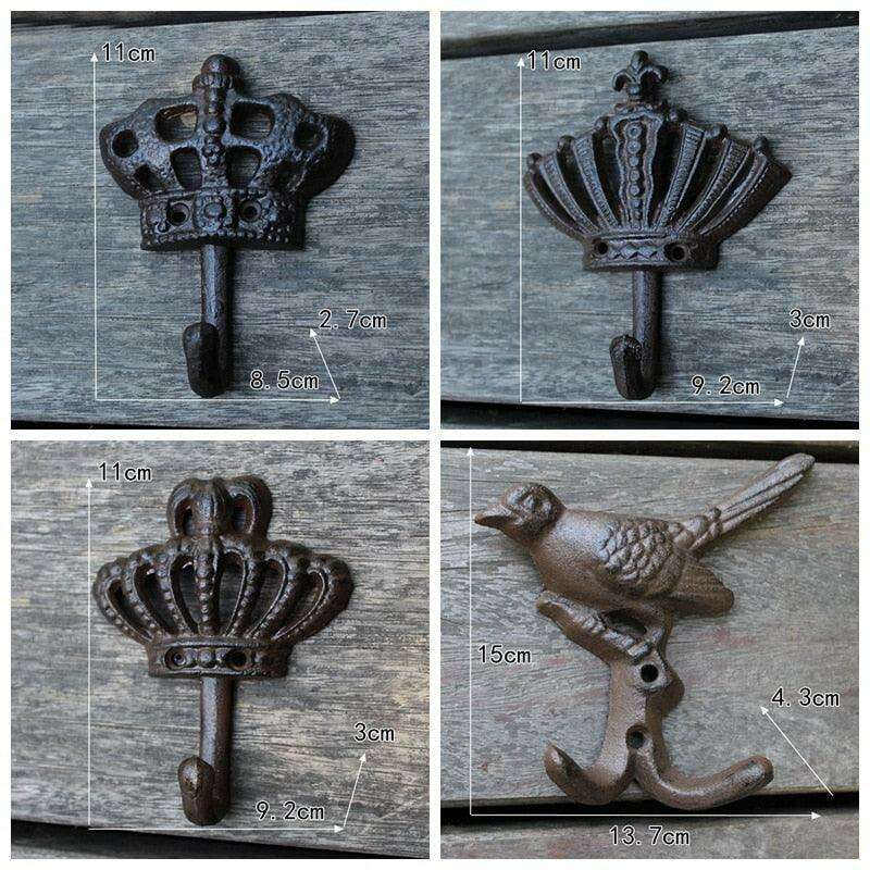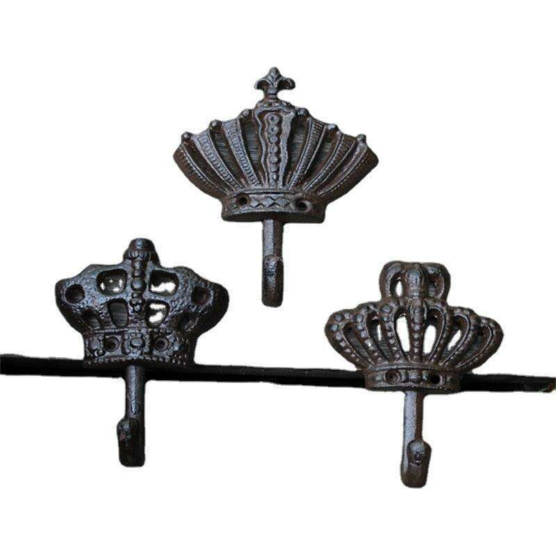 Regal Cast Iron Crown Coat Hook - Vintage Elegance for Home Decor