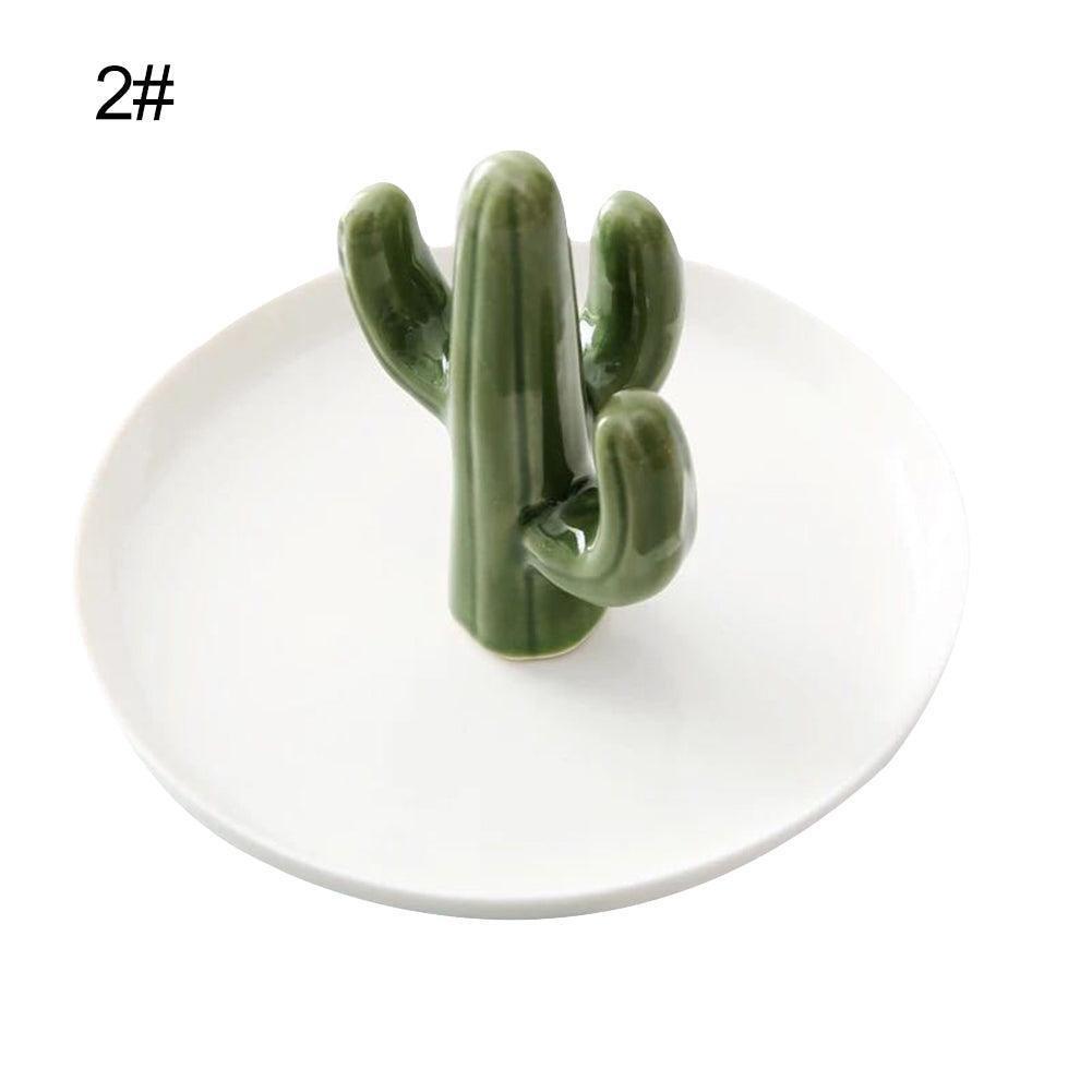 Whimsical Cactus-Inspired Ceramic Jewelry Organizer with Tray