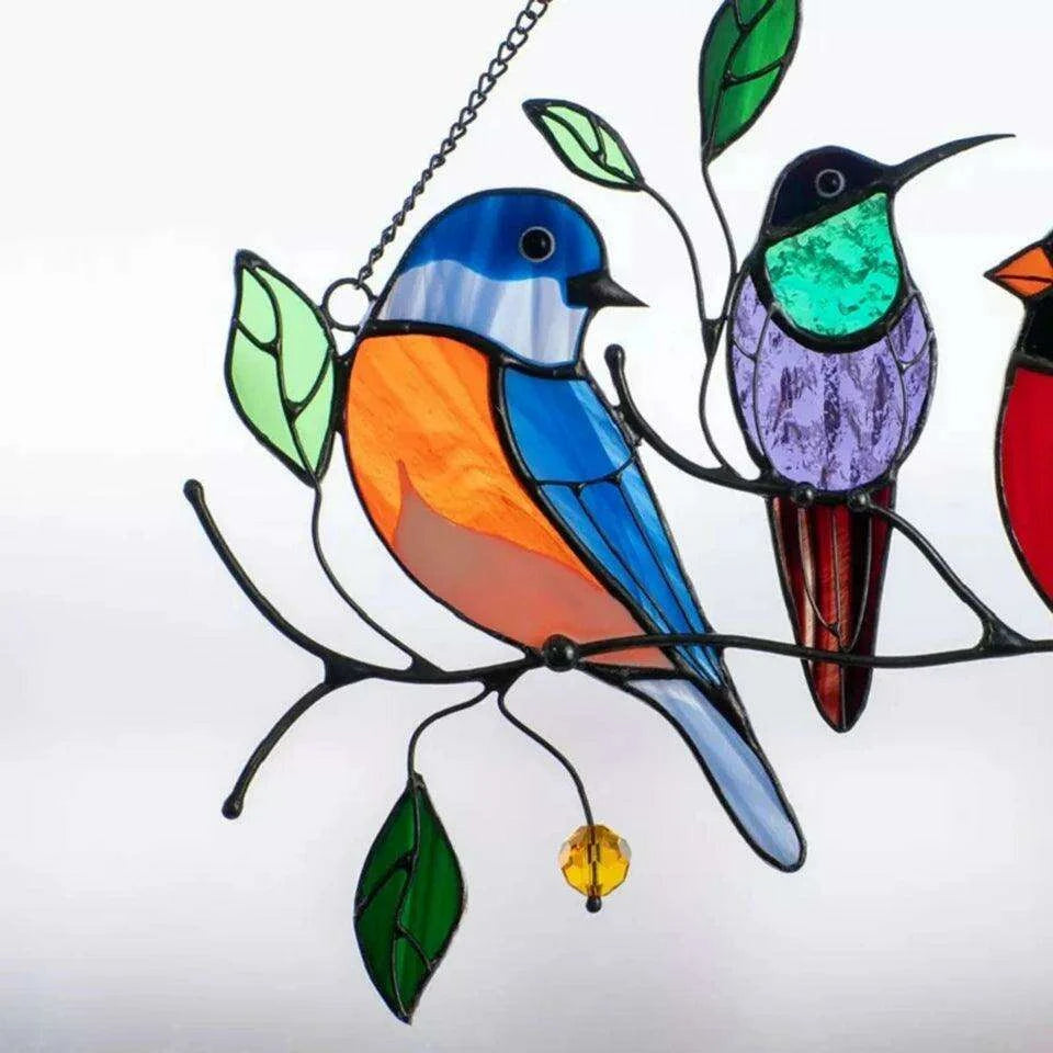 Whimsical Stained Glass Bird Window Panels - Enchanting Decor for Kids' Rooms and Radiant Sunlight Effects