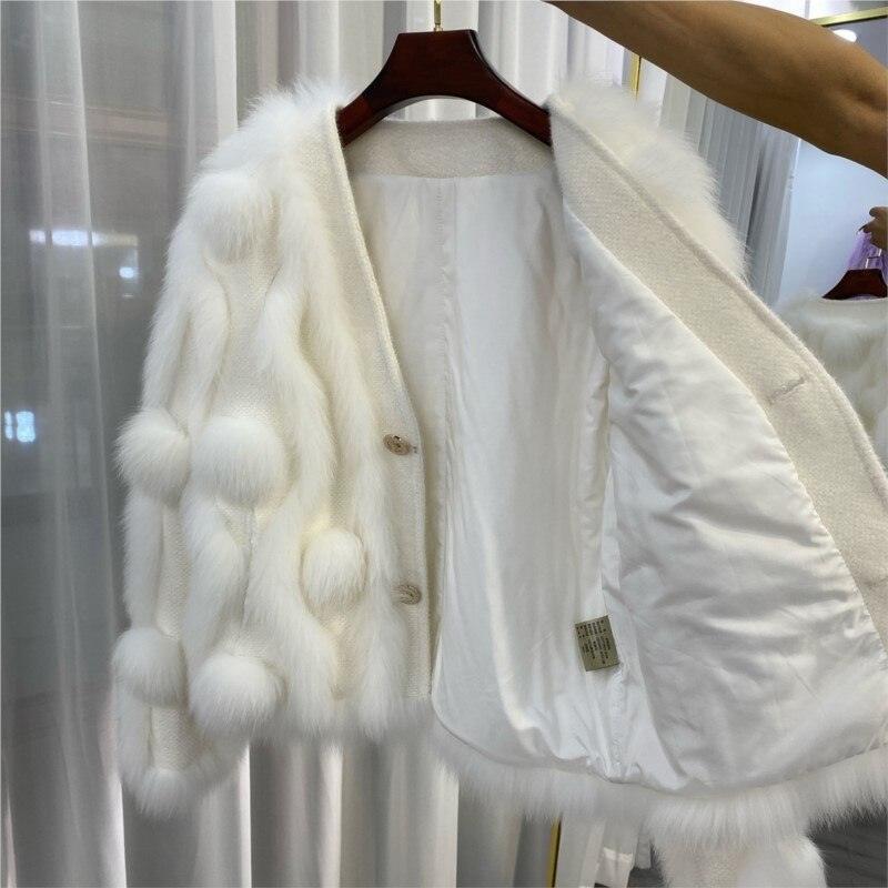 Winter Luxury: White Fox Fur Knit Cardigan