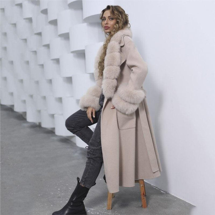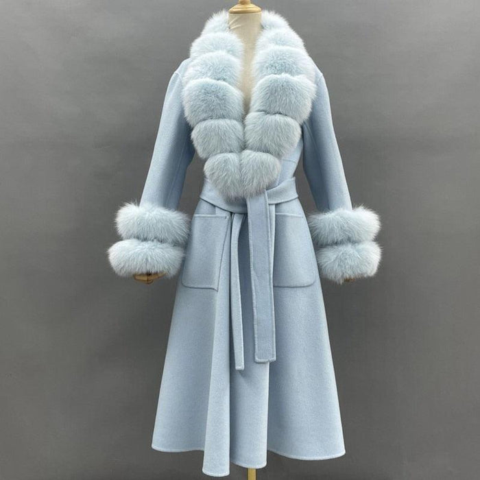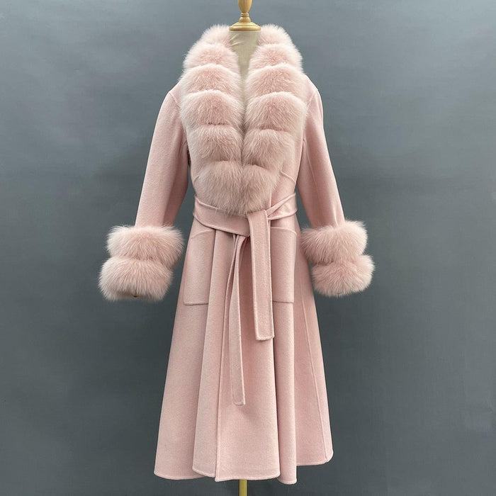 Reversible Luxury Cashmere Coat with Fox Fur Collar - Women's Winter Chic