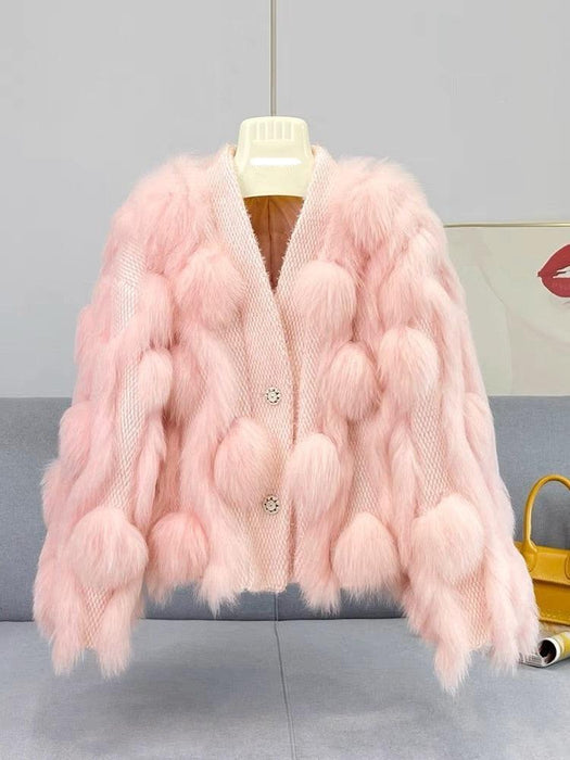 Arctic Frost Fox Fur Knit Cardigan - Opulent Winter Elegance