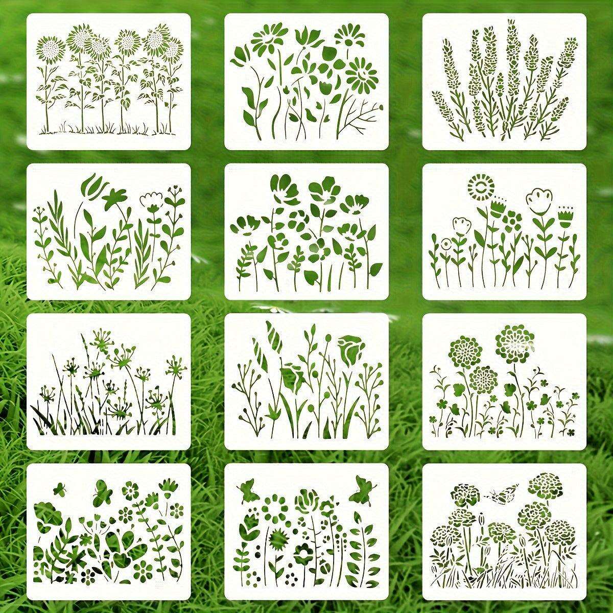 12-Piece Reusable Floral Stencil Set with Cherry Blossom and Vine Patterns