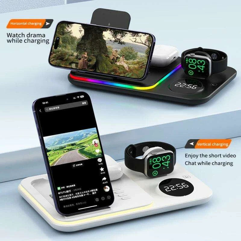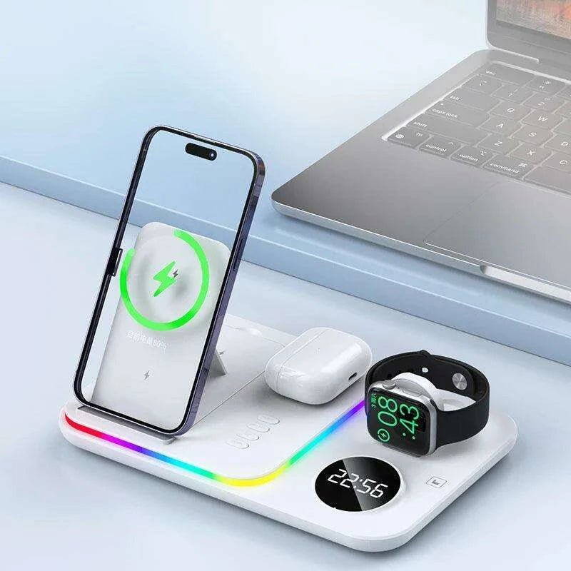 Multi-Device 5-in-1 Wireless Charging Station with RGB LED Display