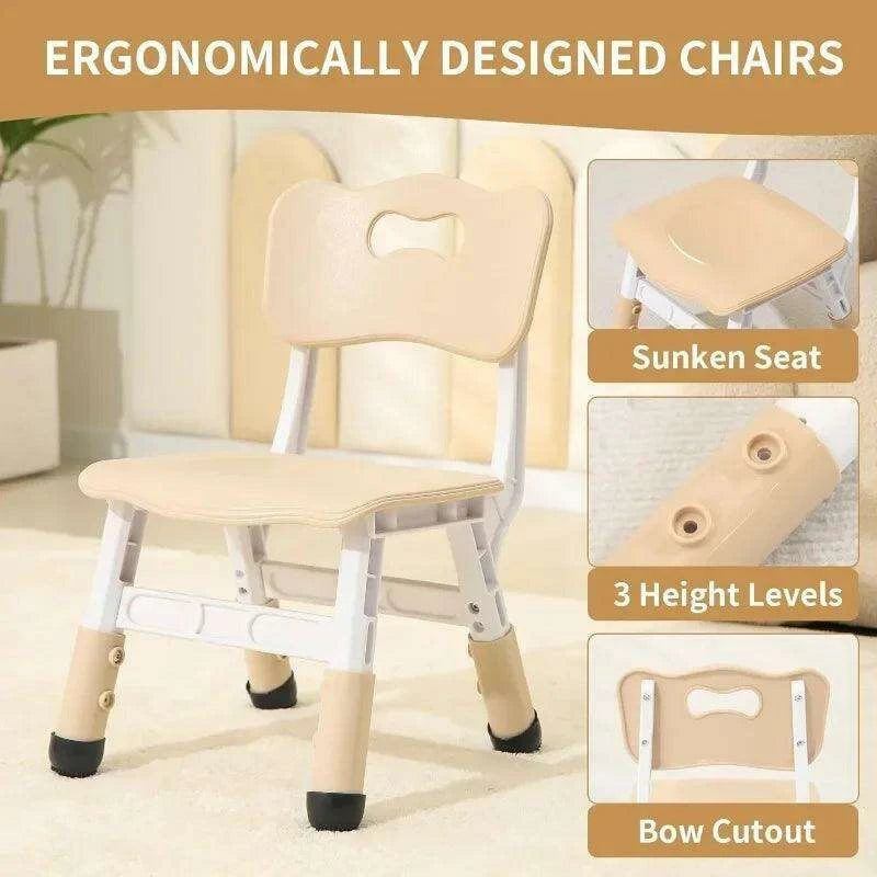 - Ergonomic Design: Chairs designed for proper sitting posture with a curved backrest and sunken seat to protect the child's spine.