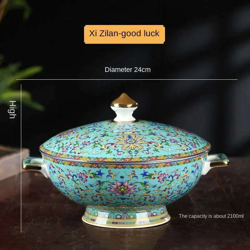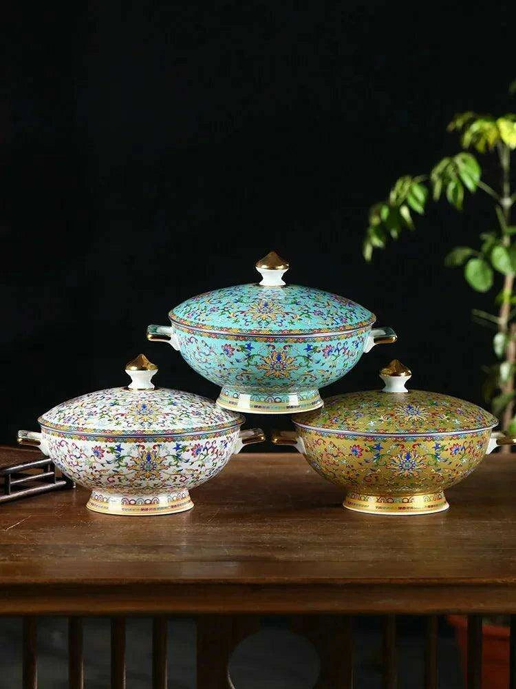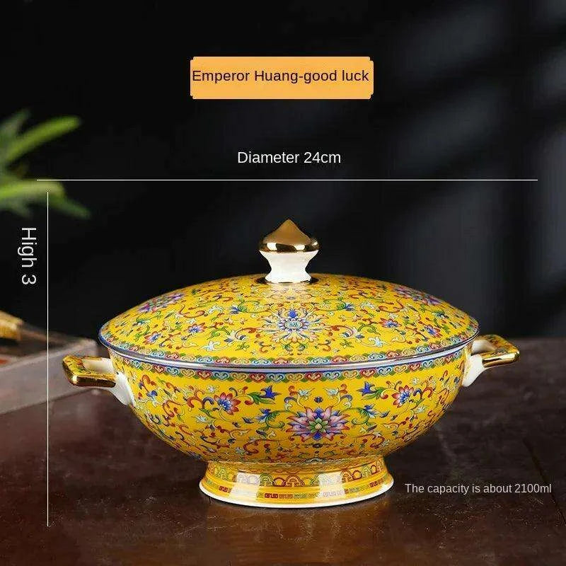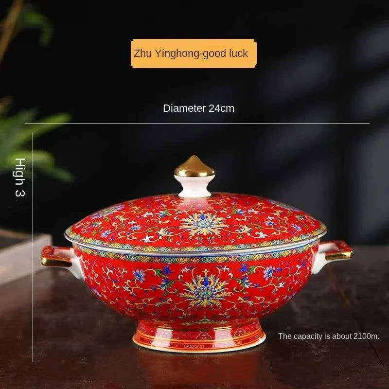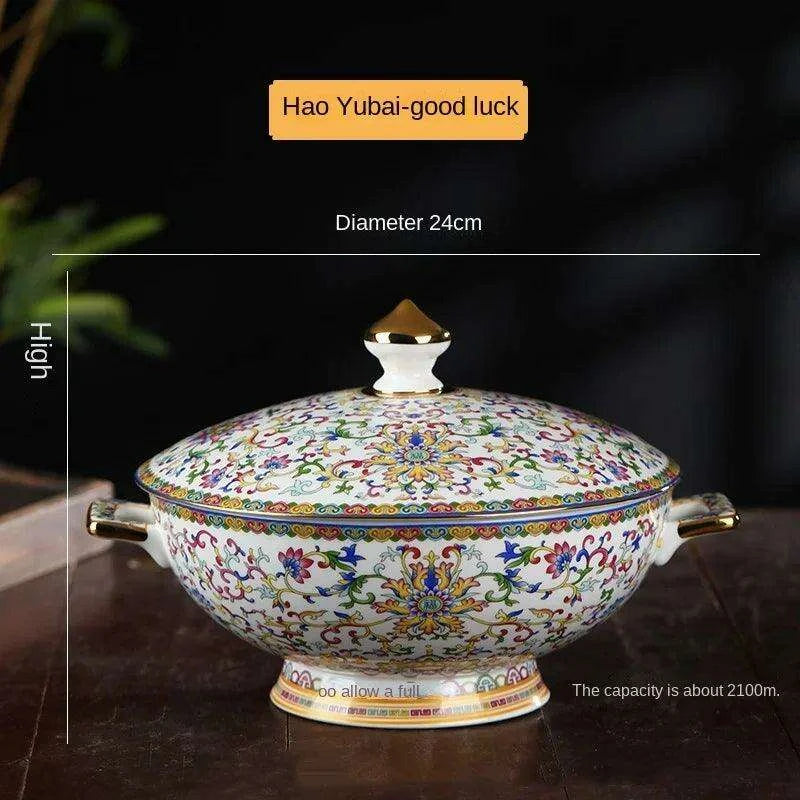 This Sophisticated Ceramic Soup Pot Set showcases your appreciation for traditional Chinese artistry and fine craftsmanship. Whether you're hosting an intimate dinner party or enjoying a quiet meal at home, this pot will undoubtedly impress your guests and enhance the dining atmosphere. Transform your culinary presentations into captivating experiences with our elegantly designed soup pot.