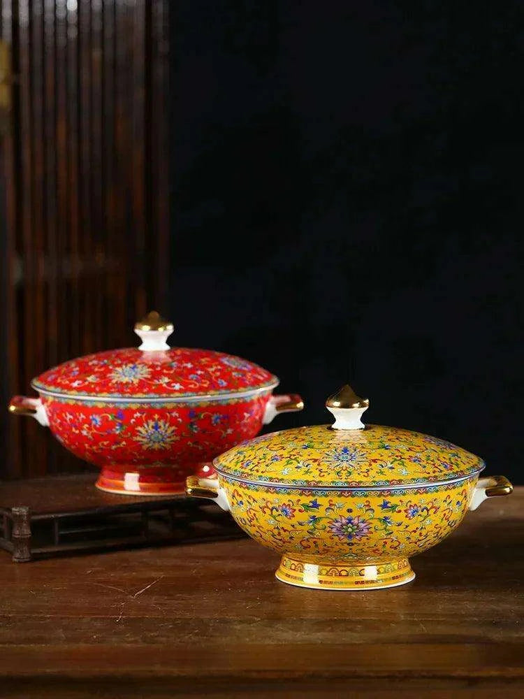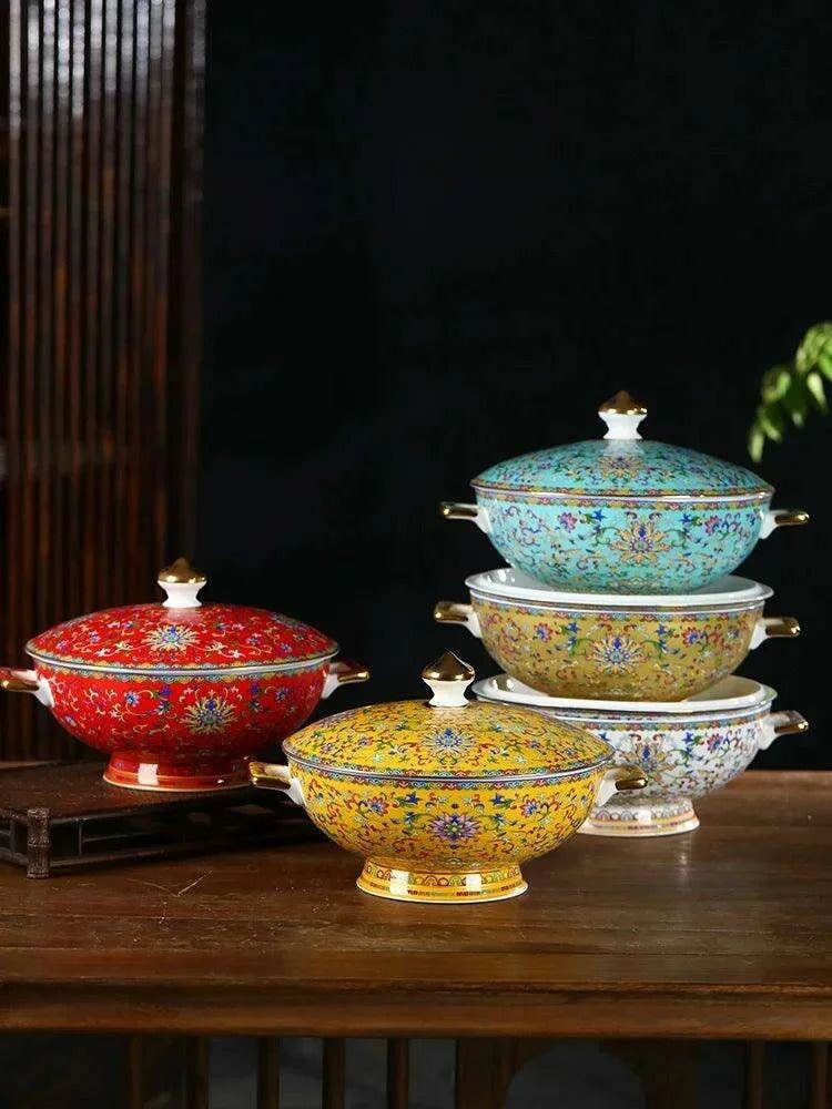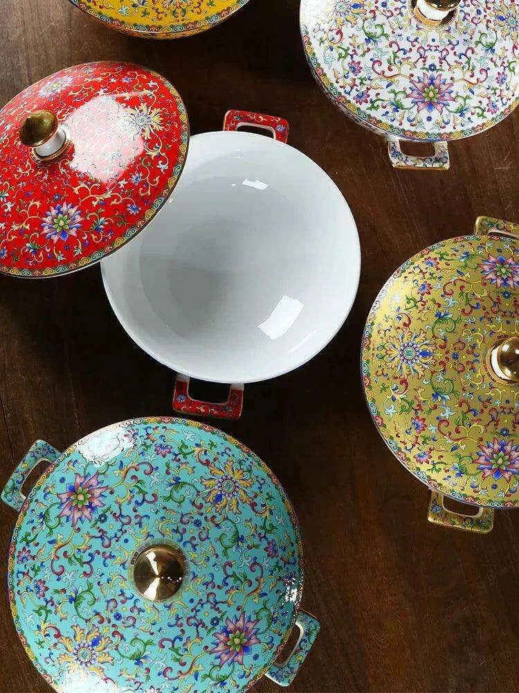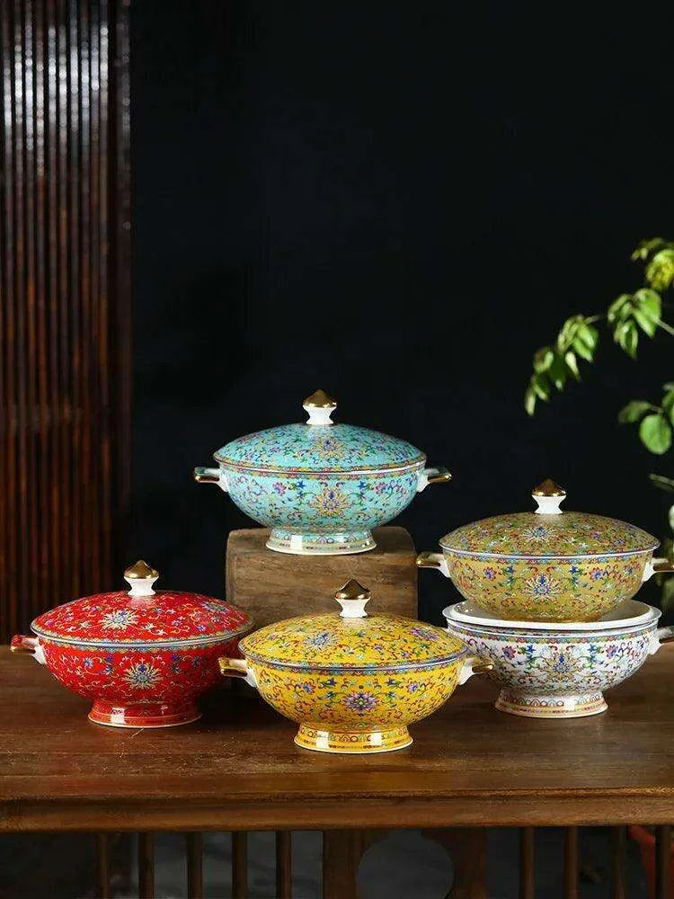 This Sophisticated Ceramic Soup Pot Set showcases your appreciation for traditional Chinese artistry and fine craftsmanship. Whether you're hosting an intimate dinner party or enjoying a quiet meal at home, this pot will undoubtedly impress your guests and enhance the dining atmosphere. Transform your culinary presentations into captivating experiences with our elegantly designed soup pot.