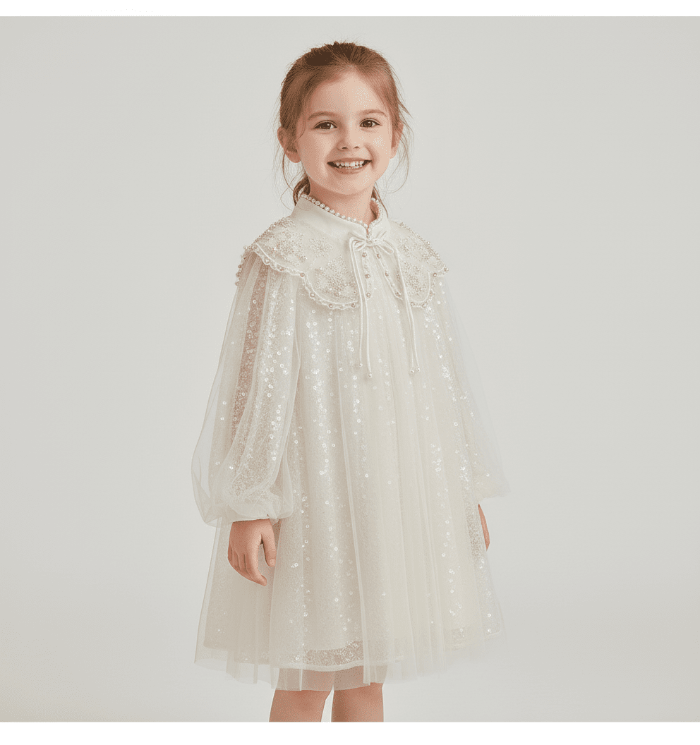 • Stunning Sequin Detailing: Dazzling sequins adorn the dress, offering a sprinkle of sparkle that ensures your little girl shines on any occasion.