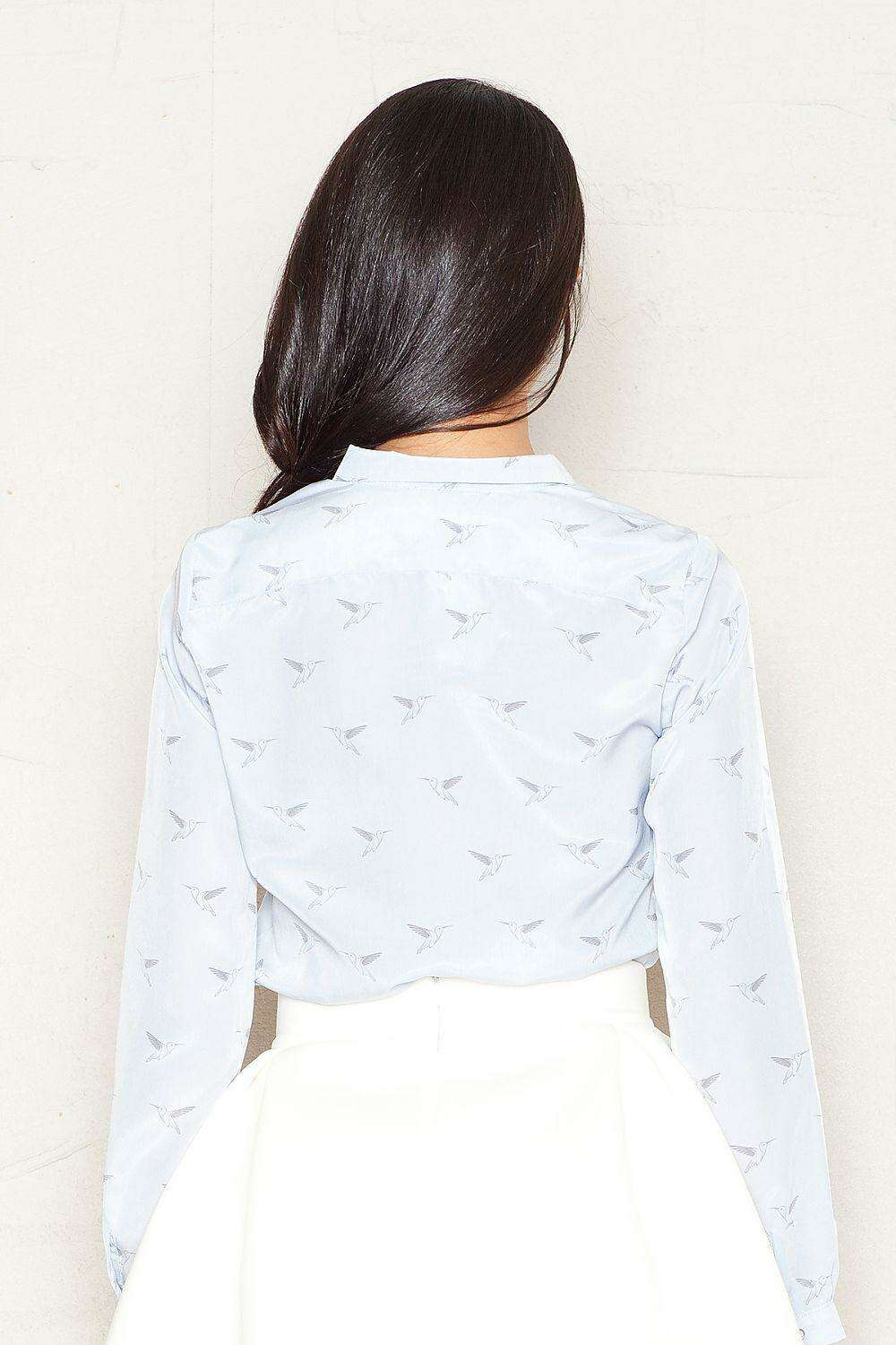 Introducing the Avian Elegance: Bird Print Button-Up Blouse, a stylish and sophisticated addition to your wardrobe that perfectly merges fashion with comfort. This blouse is crafted for the modern woman who values unique details and versatility in her clothing.