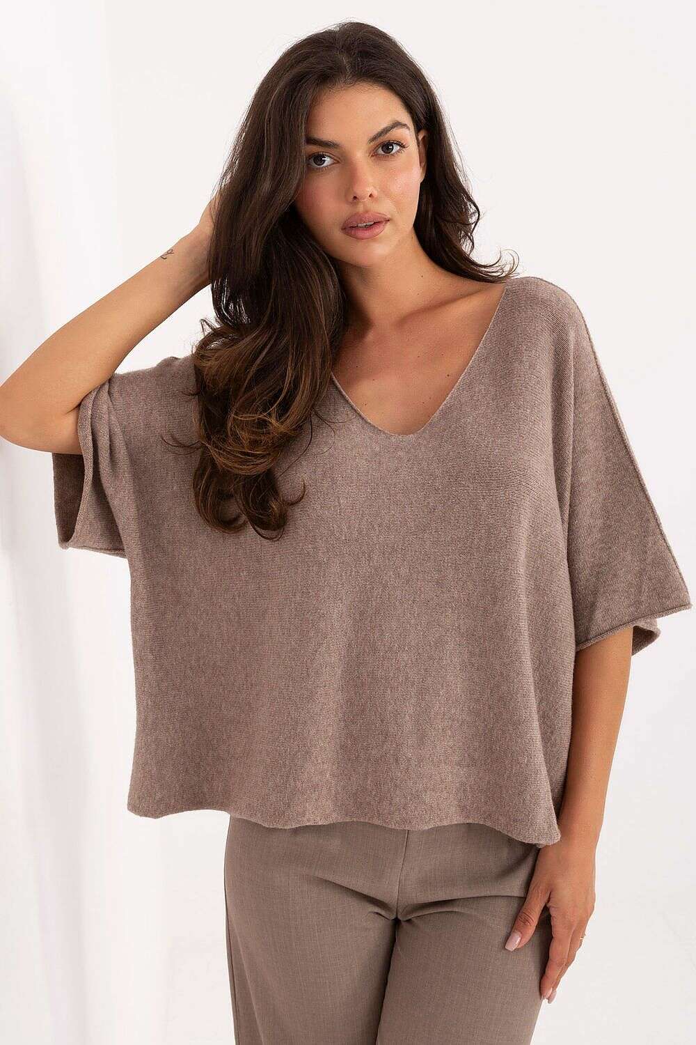 Short sleeve sweater model 216681 is a casual women's sweater designed for everyday wear. Crafted from a soft, pleasant-to-the-touch blend of viscose, polyester, and nylon, it delivers comfort and durability for long-time use.