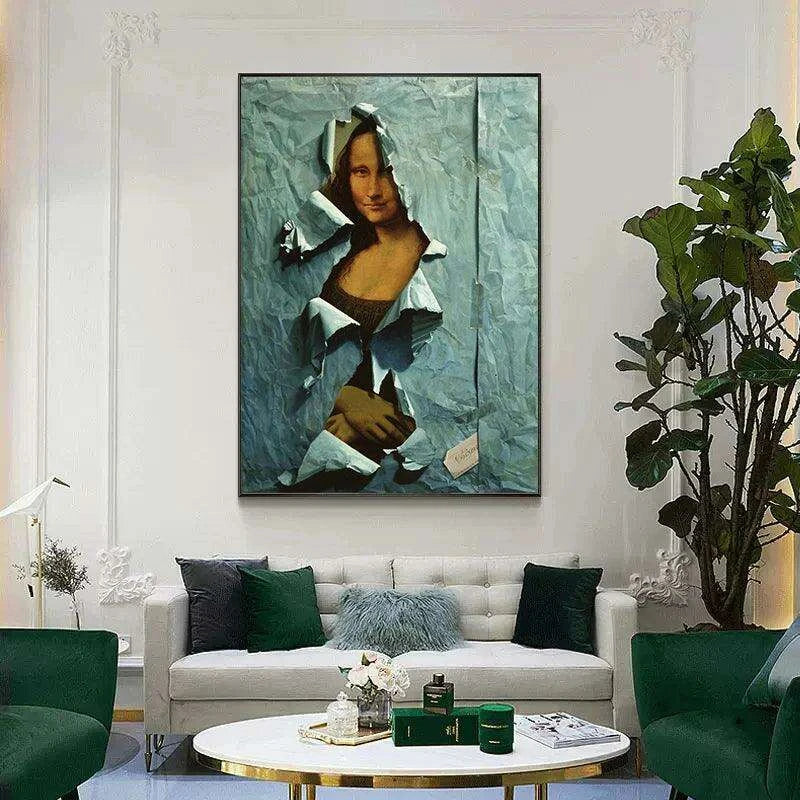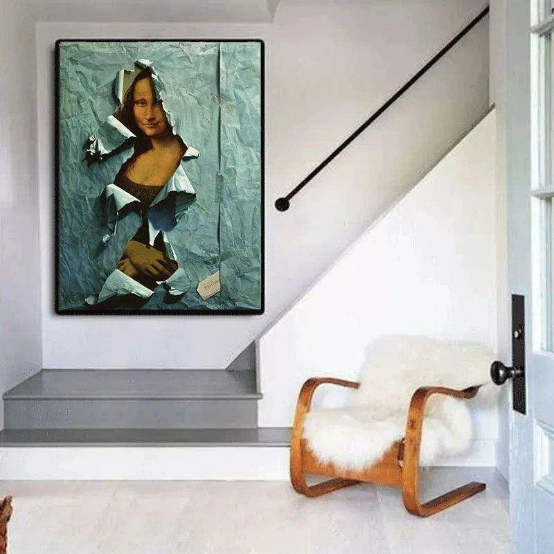 This machine-printed artwork guarantees high-quality detail, bringing the enchanting image of the Mona Lisa to life in a fresh and playful manner. The frameless design emphasizes the art itself, making it versatile enough to fit seamlessly into any wall space in your home.