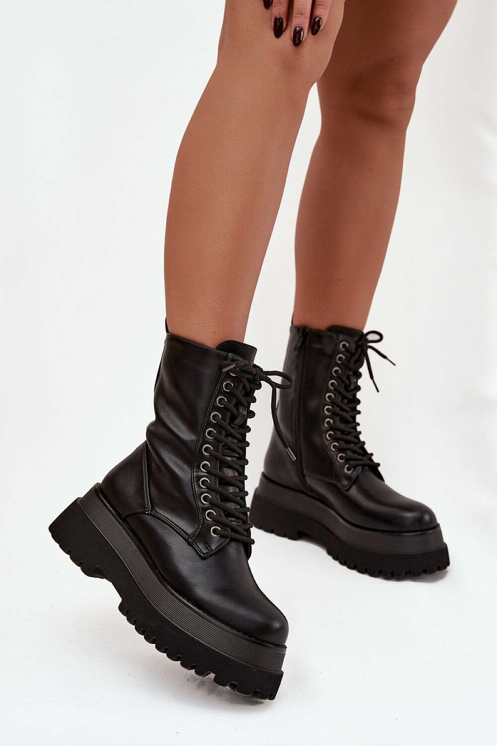 Women's Platform Work Boots – Eco Leather, Lace & Zipper, 19cm Shaft- Très Elite- Très Elite