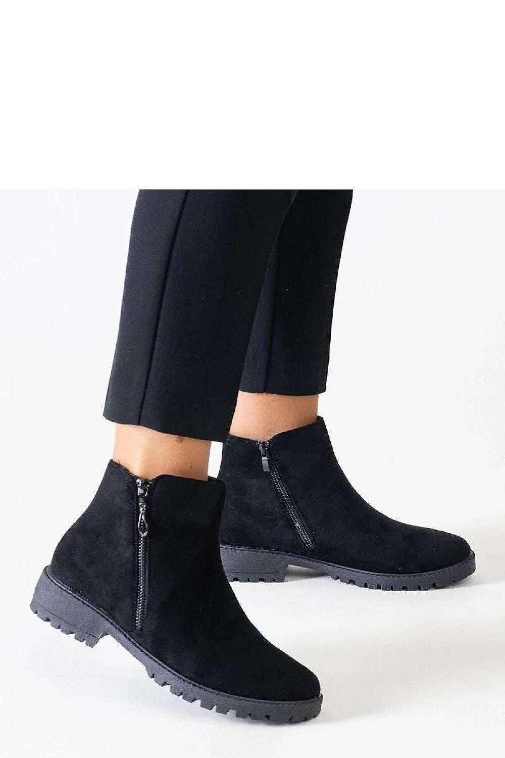 Brown ankle boots with metal inserts made of eco-suede Brand are the perfect choice for those who appreciate fashion and comfort. These boots are an essential element in every wardrobe, as they perfectly complement many different stylings. Made of eco-suede, they provide stability and comfort while wearing. Perfect for winter, these shoes are insulated to protect against the cold. The flat heel makes them comfortable even during long wear. The brown color gives them a universal character that will match many different outfits. The zipper closure makes it easy to put on and take off. These ankle boots will certainly be a perfect addition to your wardrobe for the Fall/Winter season.