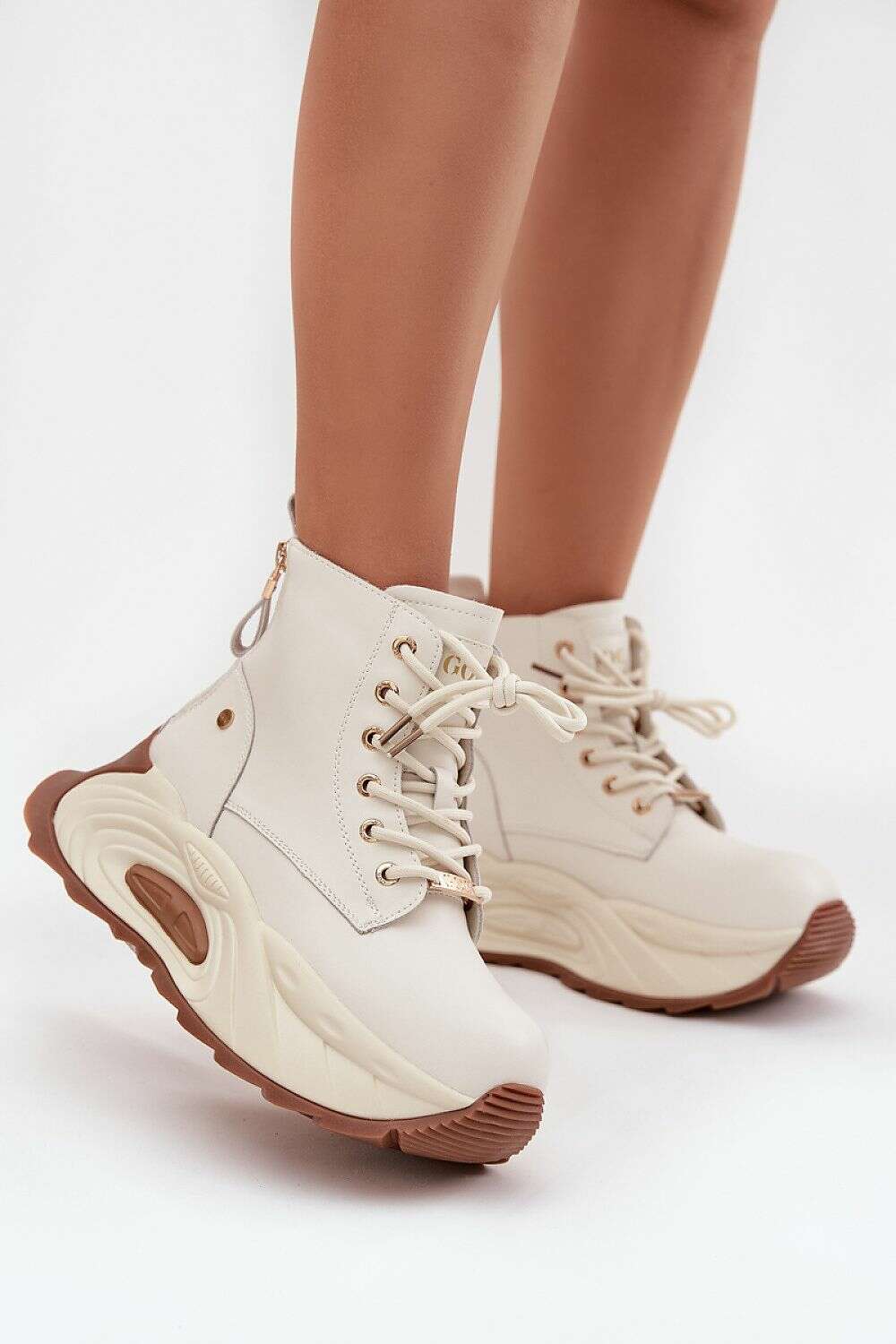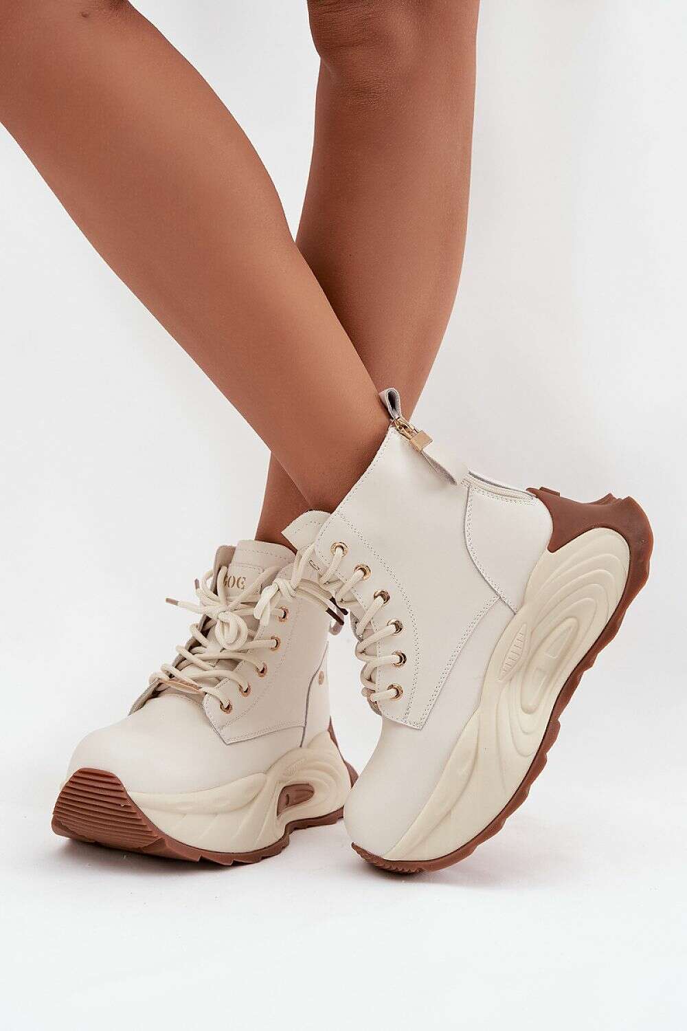 Set on a chunky platform, these boots add character to your silhouette and fit perfectly into current trends. The model is lace-up, and additionally features two back zippers along the sides for easy wear and a distinctive design that elevates any outfit.