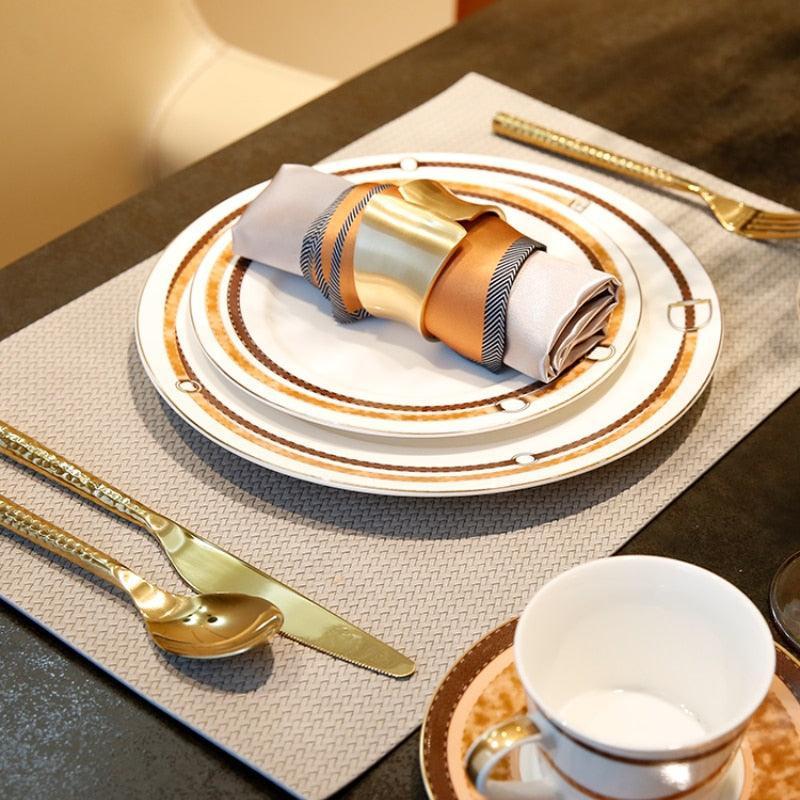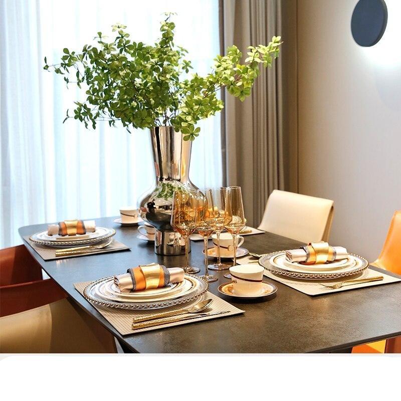 • Comprehensive Crockery Set: Our complete set includes placemats, cutlery, cups, saucers, and red wine glasses, offering versatile and sophisticated arrangements for any occasion.