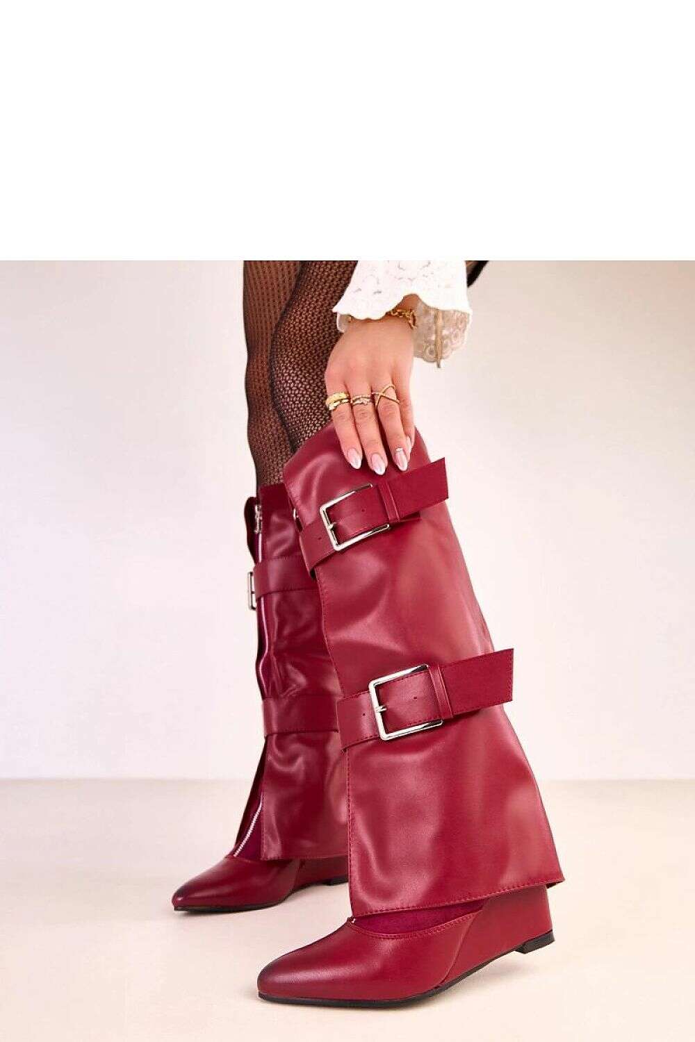 Buskin Boots Model 220244 are elegant knee-high boots that blend classic design with modern finishing for autumn-winter outfits. Crafted in high-quality faux leather, they deliver a striking look with a turned-down shaft and decorative buckles that add distinctive character to any outfit.