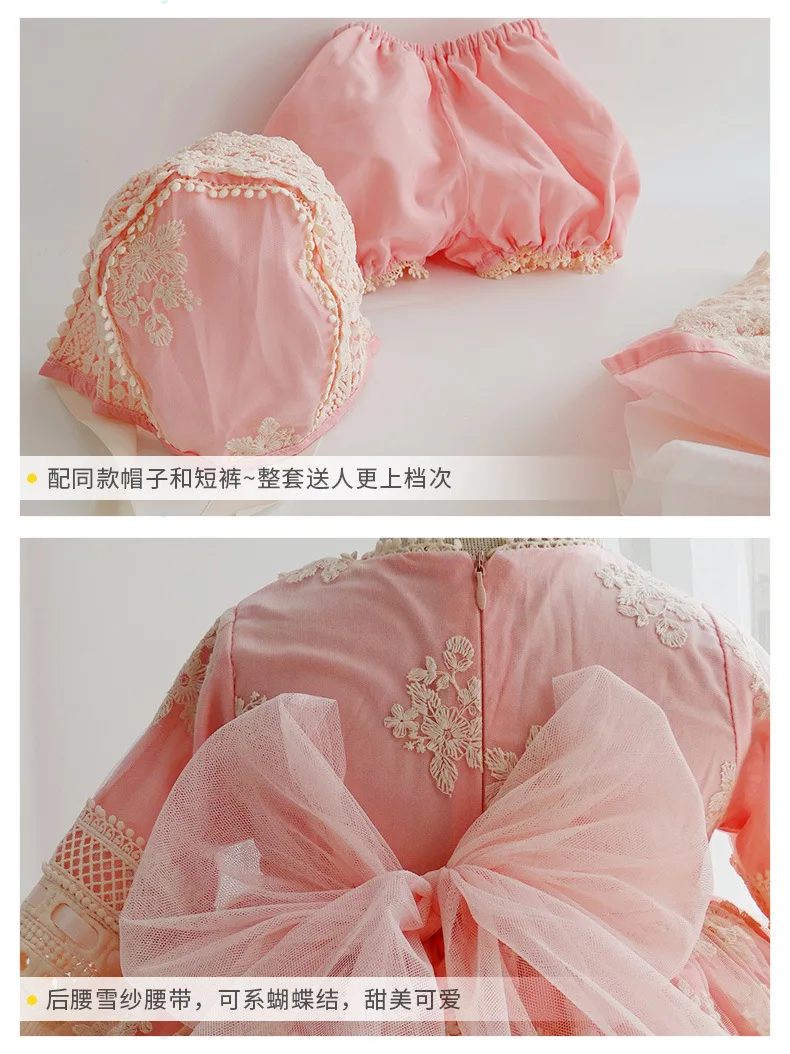 3-Piece Autumn Spanish Lolita Princess Lace Dress Set for Girls 12M-6T Y3238