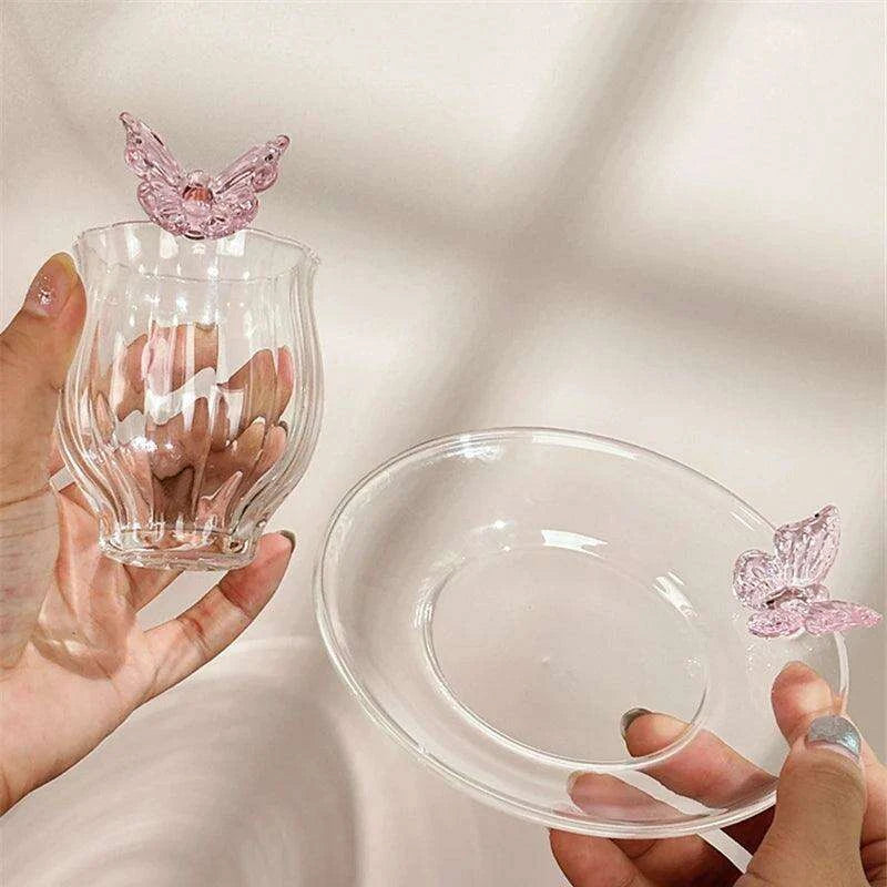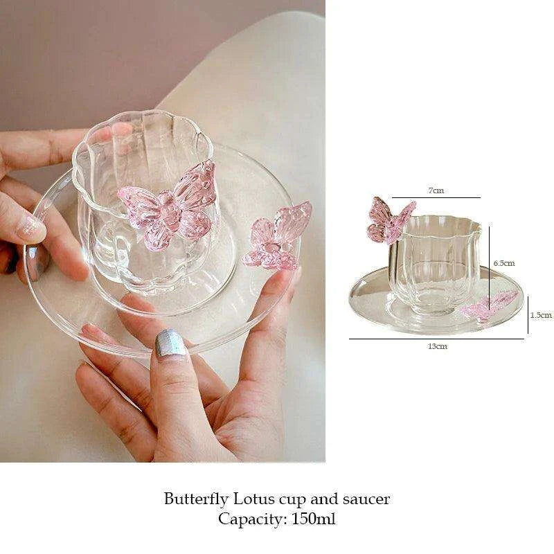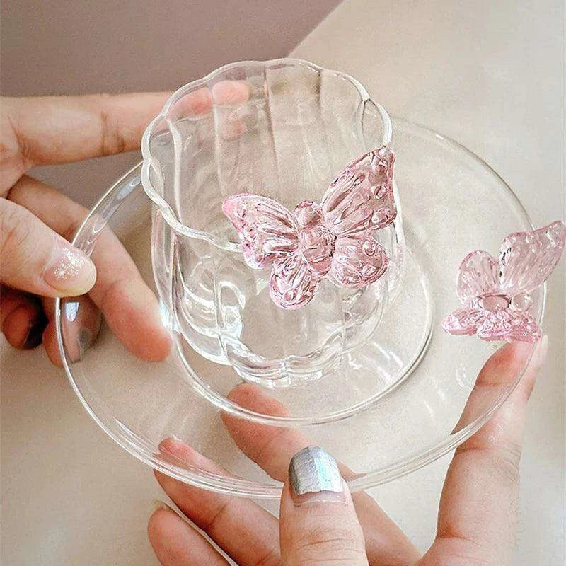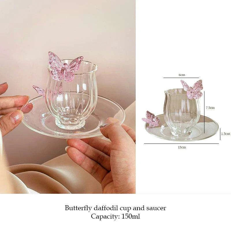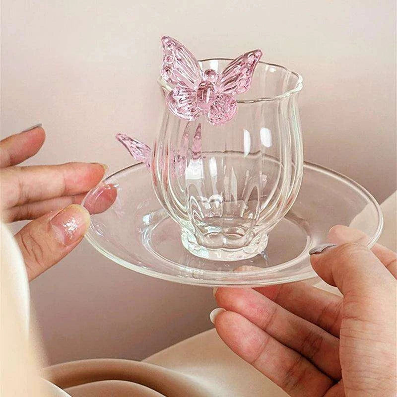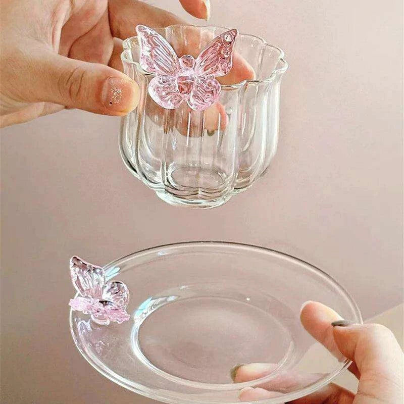 Charming Floral Butterfly Glass Teacup Set - Perfect for Elegant Tea Events