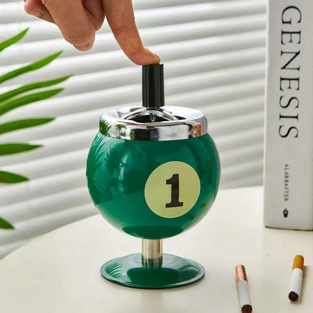 Chic Billiards-Inspired Metal Ashtray - Stylish Smoking Accessory and Decorative Accent for Home and Office
